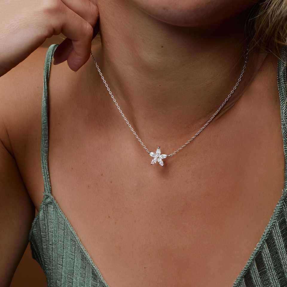 1.05 ct 14K Marquise Shaped Flower Design Lab Grown Diamond Necklace VVS2 HPHT CVD Diamond Marquise Cut Flower Pendant Necklace