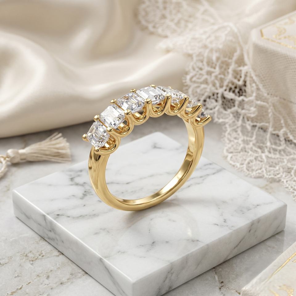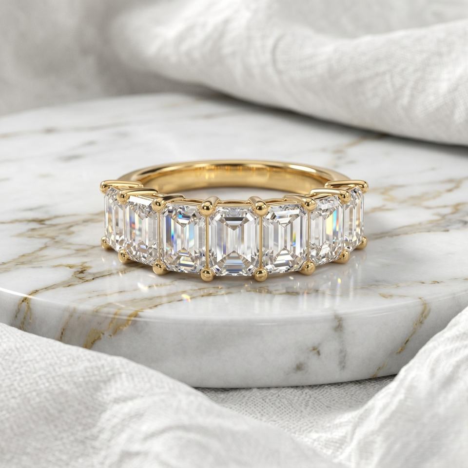 แหวนครึ่งวงกลมประดับเพชรแล็บโกรว์ทรงเอเมอรัลด์ 1.05 กะรัต ชุบทอง 14k พร้อมใบรับรอง