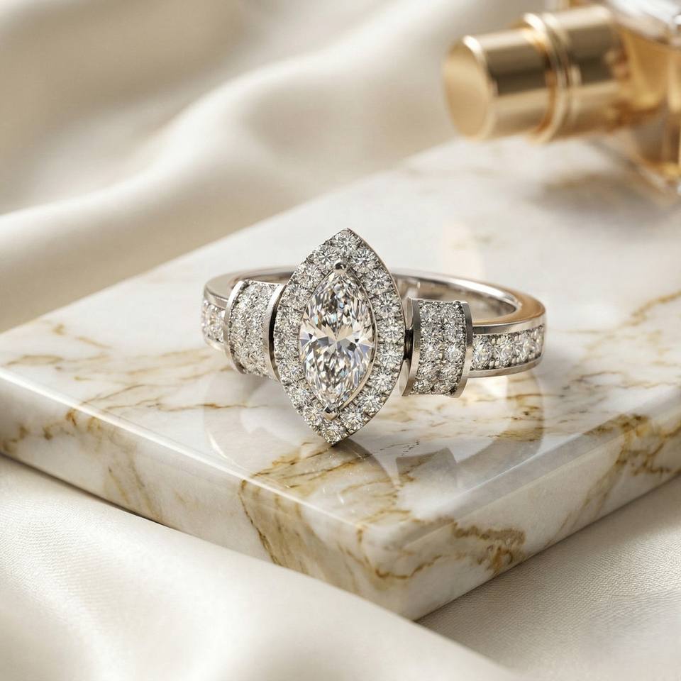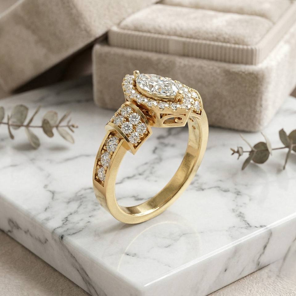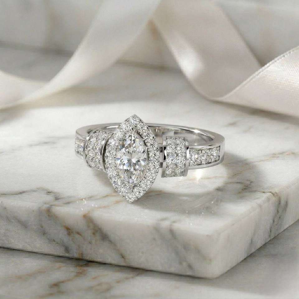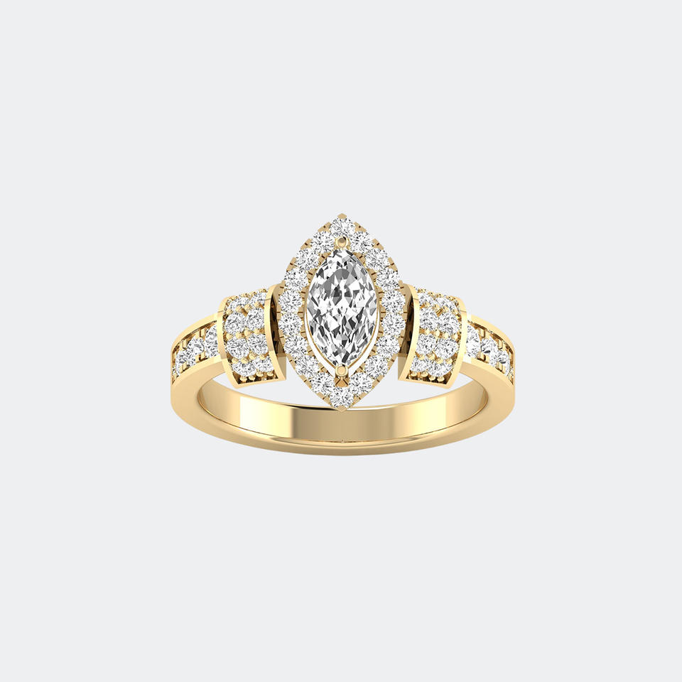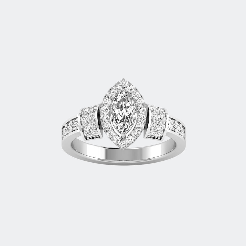 แหวนทอง 14k ประดับเพชรทรงมาร์คีส์ 1.05 กะรัต สี E พร้อมใบรับรอง ประดับด้วยวงแหวนทรงเหลี่ยม
