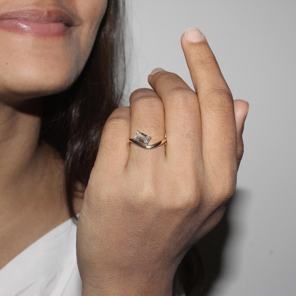 แหวนหมั้นเพชรแบบโซลิแทร์สำหรับผู้หญิง1.07ที่ปลูกในห้องปฏิบัติการได้รับการรับรองทองโรเดียม14K หรือ18K ทำด้วยมือ