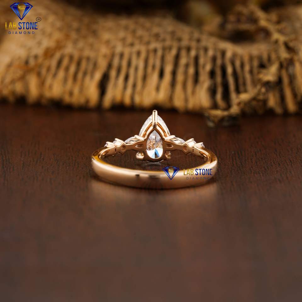 1.099 TDW Pear & Round Diamond EF-VS Color Yellow Gold Ring Cute Ring by Labstone