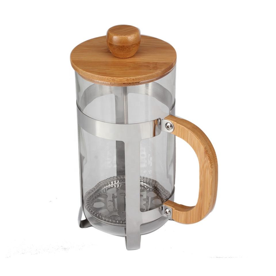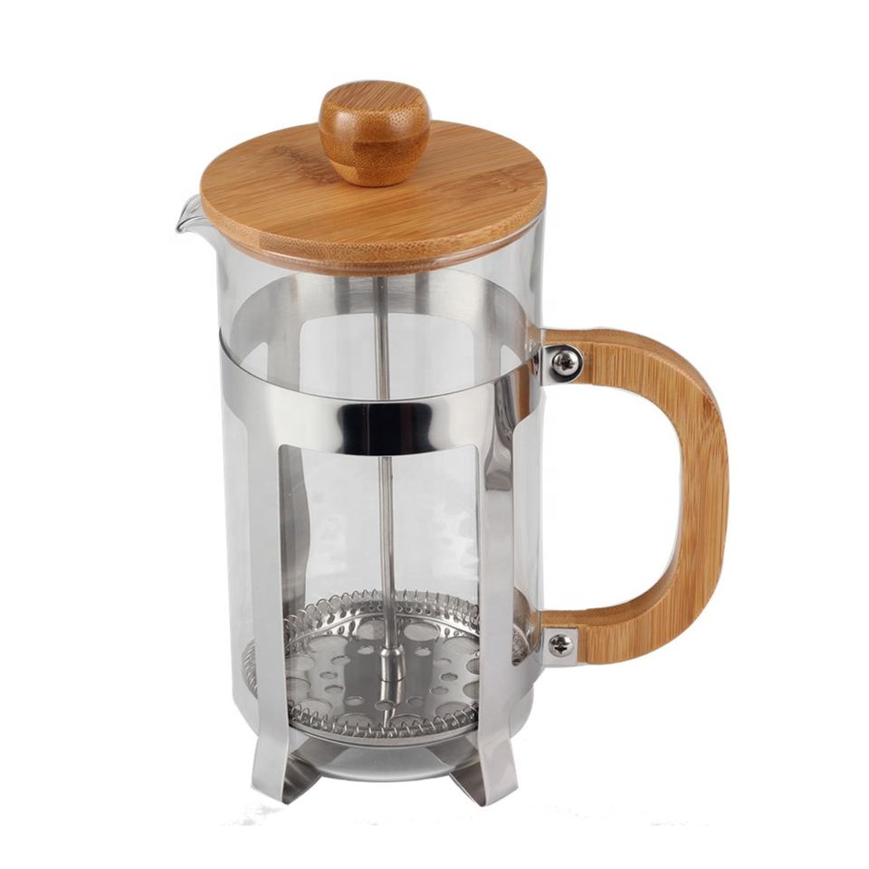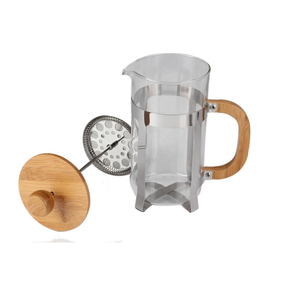 ความจุ 1.0 ลิตร, ตัวเครื่องสแตนเลส, ฝาและด้ามจับทำจากไม้, เครื่องชงกาแฟแบบเฟรนช์เพรสทำจากแก้วบอโรซิลิเกตปลอดสาร BPA