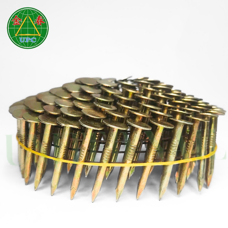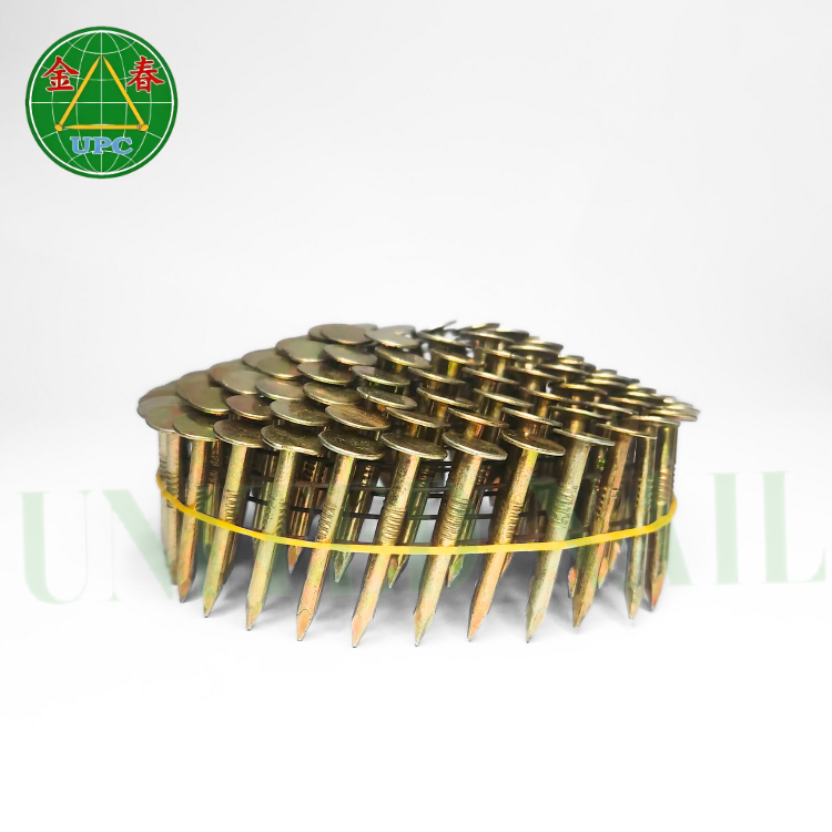 ตะปูเคลือบหลังคาแบบม้วนขนาด1-1/4 "หัวตาหมากรุกแบบก้านเรียบเคลือบสีเหลืองสำหรับโครงการมุงหลังคาจากโรงงานในเวียดนาม