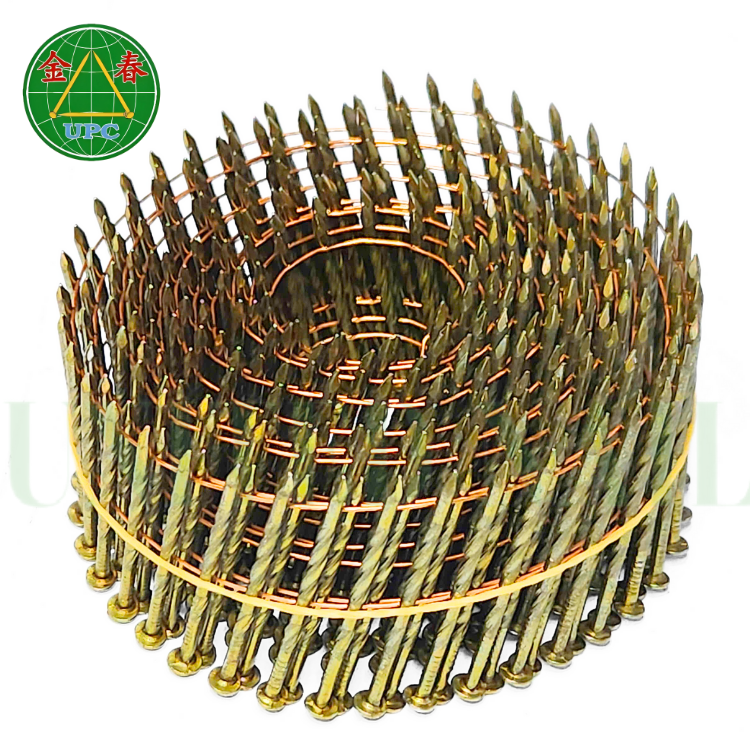 1-1/4นิ้วตะปูม้วนลวดเหล็ก14000ชิ้น15-16องศาห่วงเคลือบสีเหลืองก้านเรียบ/สกรูสำหรับพาเลทไม้