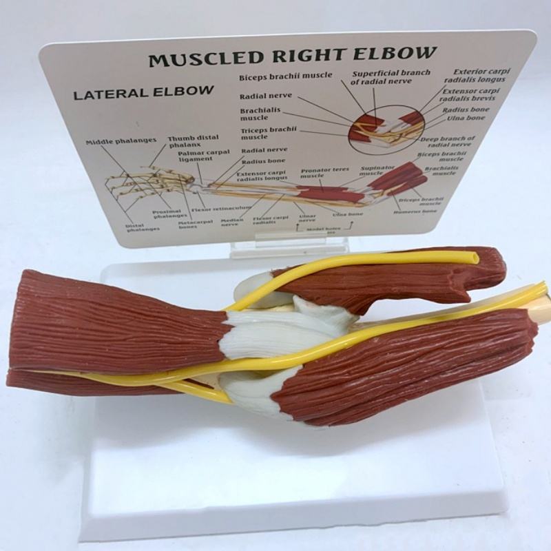 แบบจำลองโครงกระดูกมนุษย์ขนาดเท่าคนจริง 1:1 แขนขวาพร้อมข้อศอก กล้ามเนื้อ หลอดเลือด และเอ็น สำหรับการเรียนการสอนทางการแพทย์
