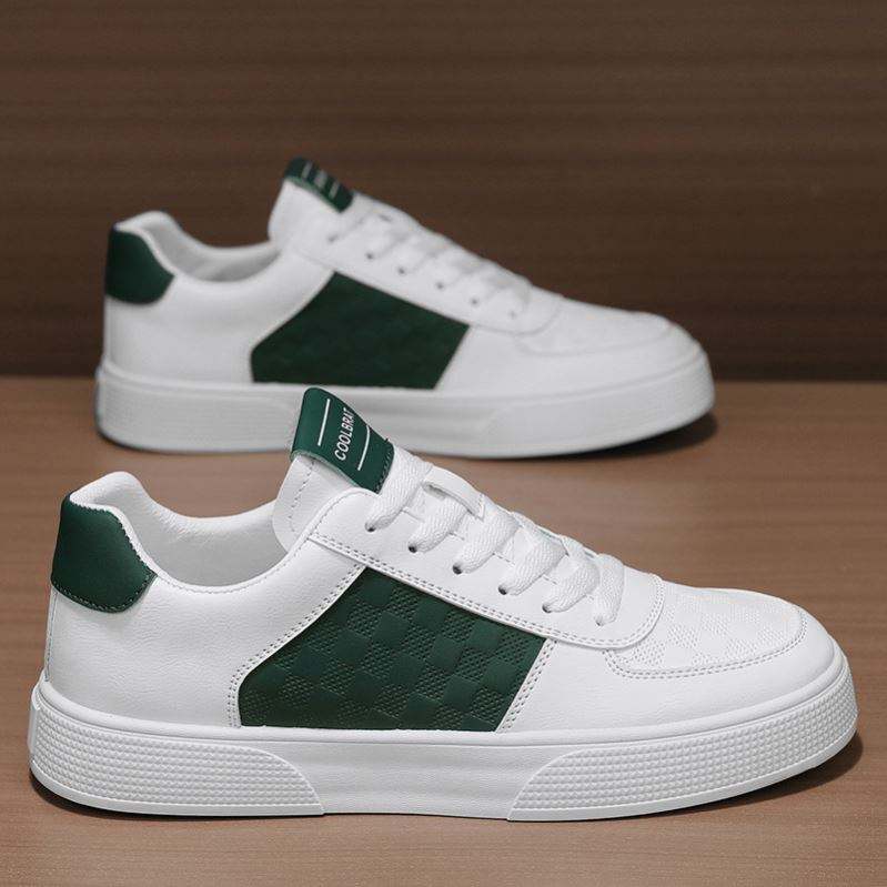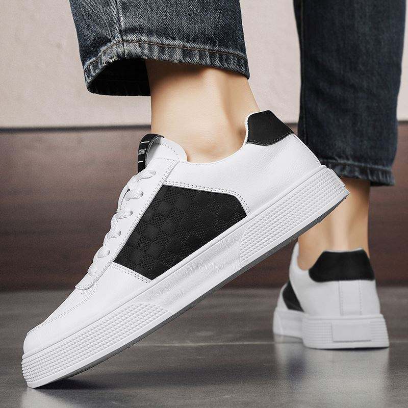 รองเท้าหนังสีขาวขนาดเล็กระบายอากาศได้ดีรองเท้ากีฬาส้นแบนสวมใส่สบายรองเท้าผู้ชายลำลองข้อต่ำแบบแมทช์ได้1 2025