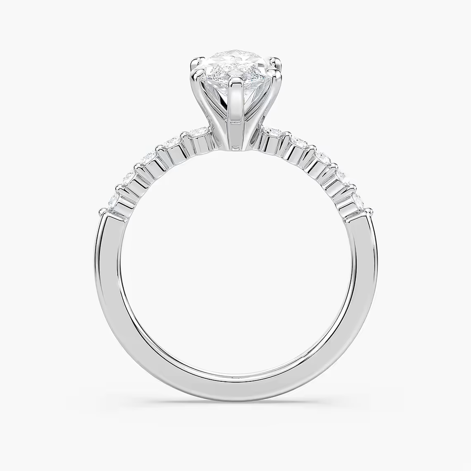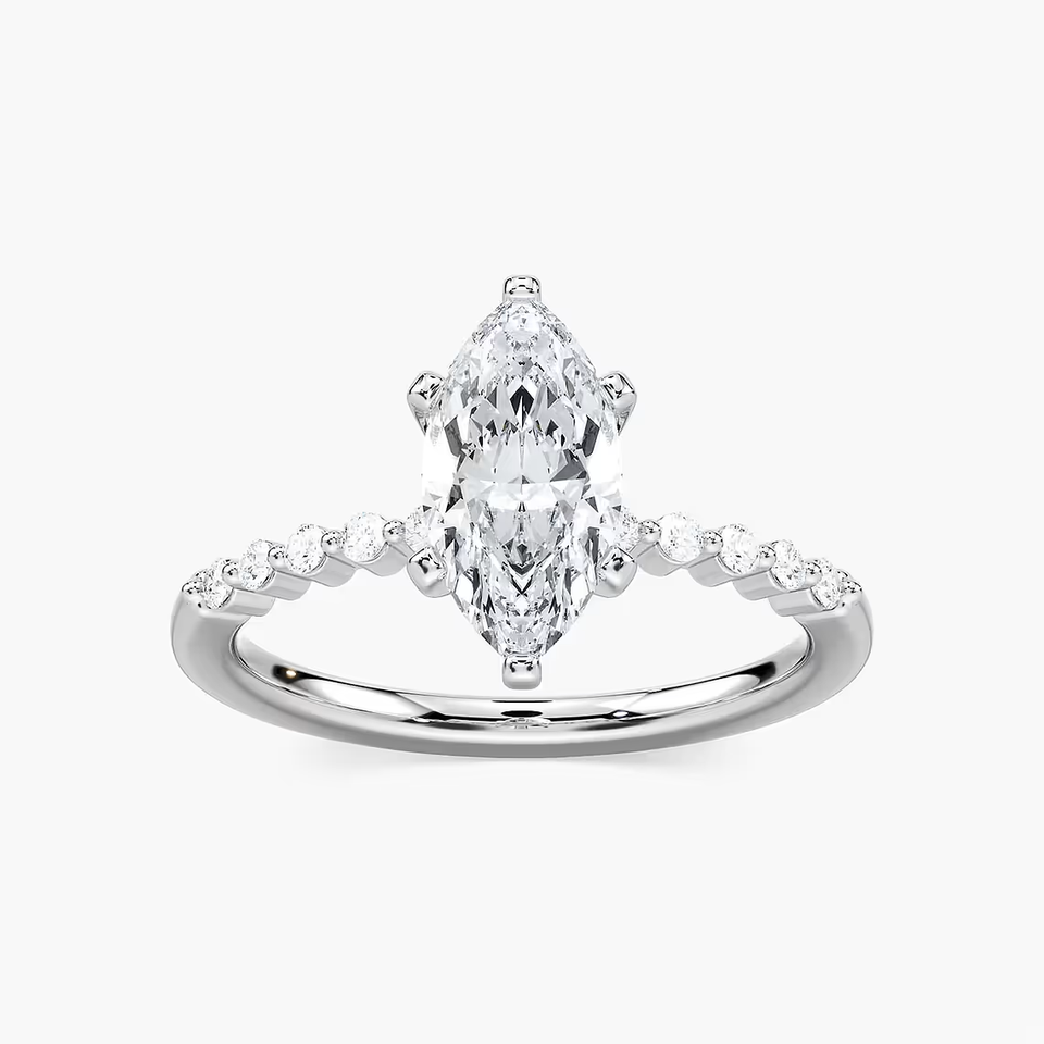แหวนหมั้นเพชรทรงมาร์ควิส 1.10 กะรัต ผลิตในห้องปฏิบัติการ ได้รับการรับรองจาก IGI ตัวเรือนทองคำแท้ 14K ประดับเพชรแบบ Pave Band แหวนแต่งงานแบบ Solitaire สำหรับผู้หญิง