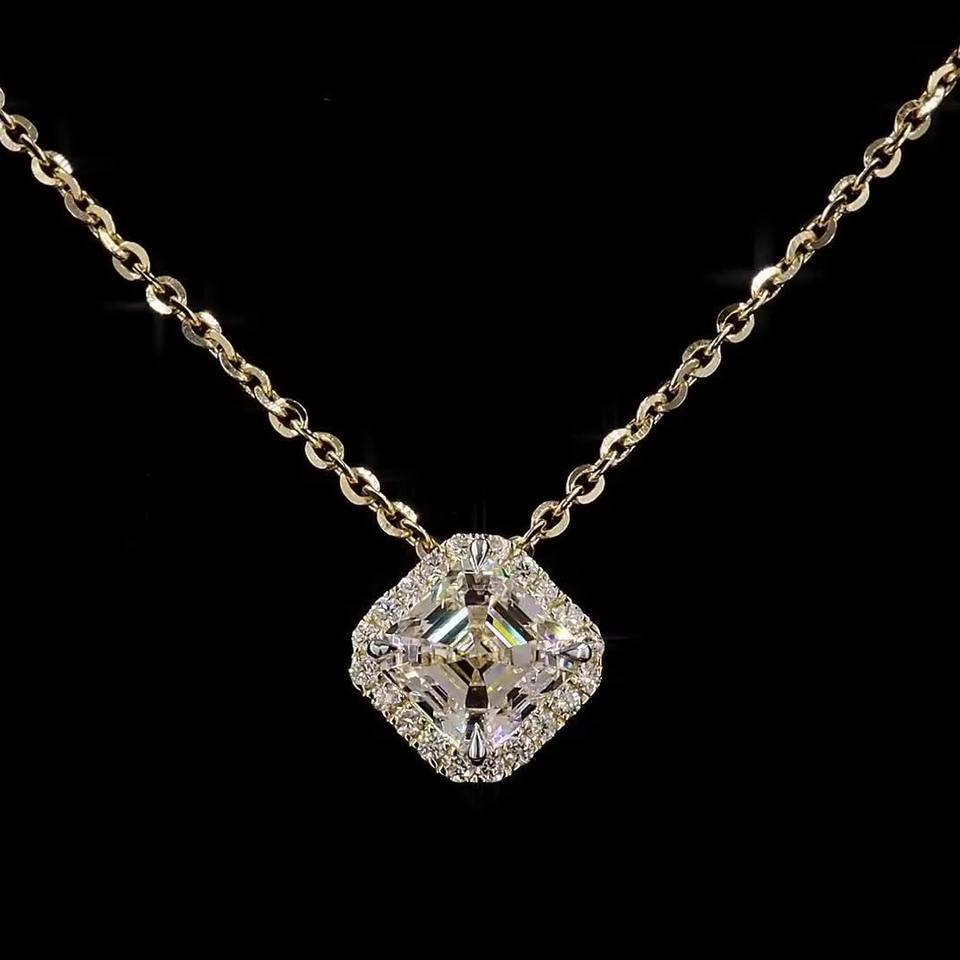 1.12 CT Asscher ตัดแล็บปลูกสร้อยคอเพชร14K สีเหลืองทองน้ำหนักเบาเครื่องประดับหรูหราสำหรับสวมใส่ทุกวัน