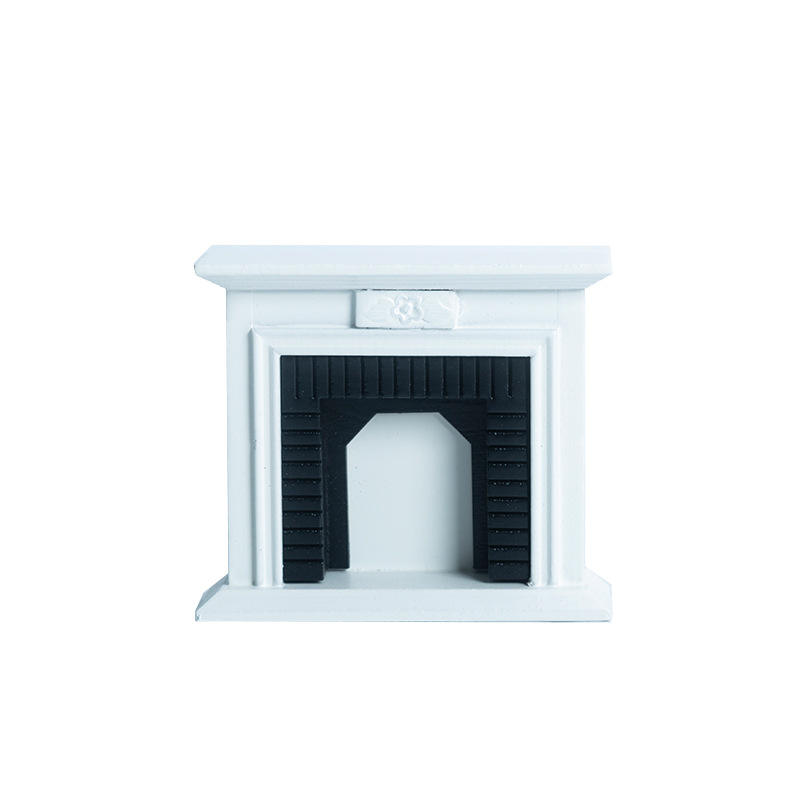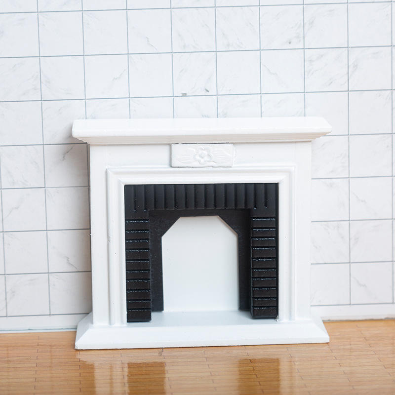 ห้องนั่งเล่นคลาสสิก1:12เฟอร์นิเจอร์เตาผิงสีขาวขนาดเล็กสำหรับบ้านตุ๊กตาของเล่นแบบทำมือโมเดลไม้สำหรับเด็ก