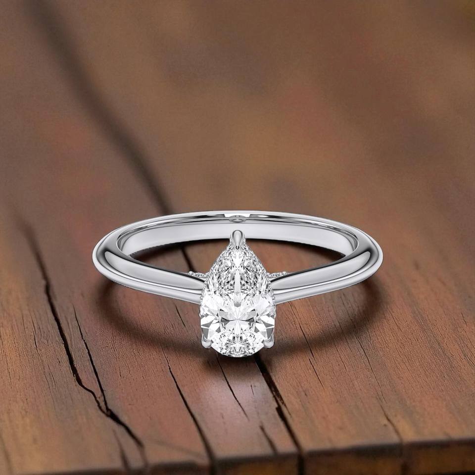 ชุดง่ามเพชรทรงกลมสำหรับผู้หญิง1.14กะรัต F-G/เทียบกับลูกแพร์โตในแล็บสำหรับผู้หญิง