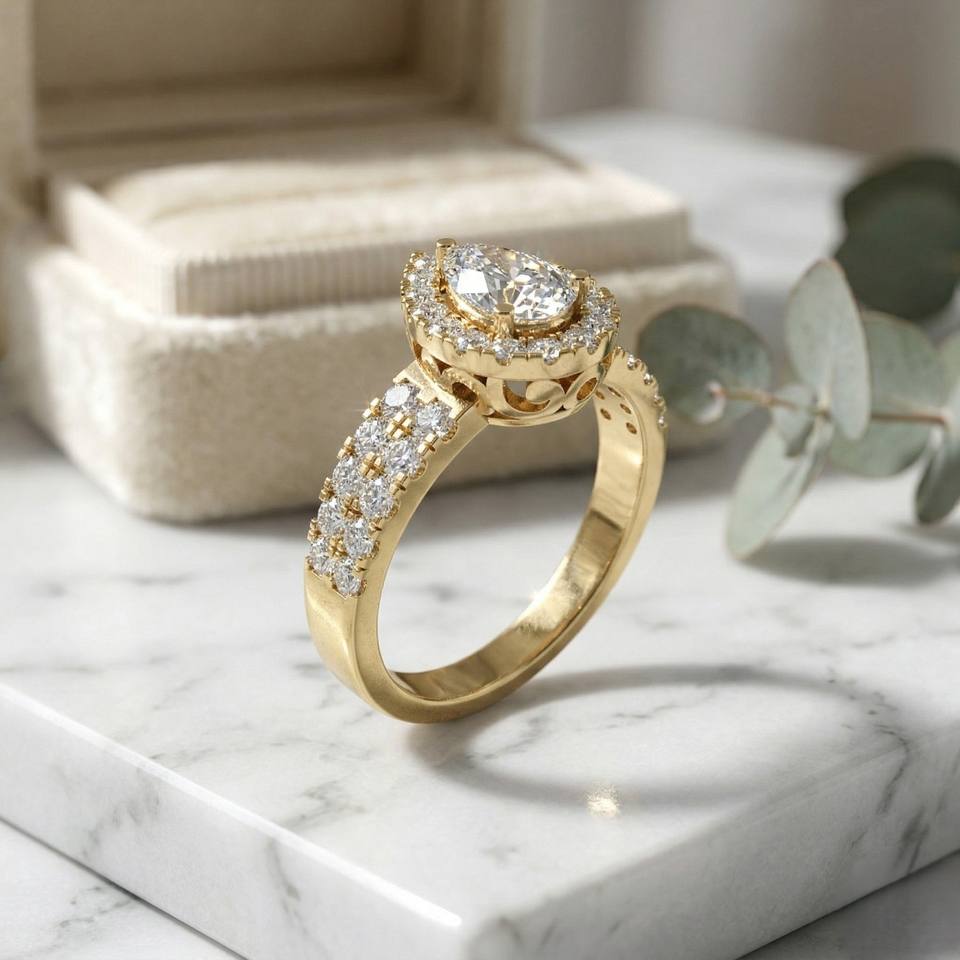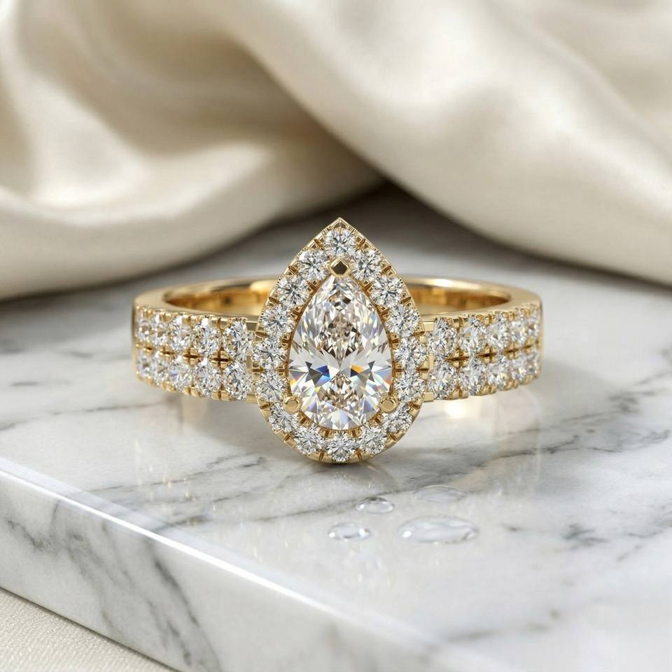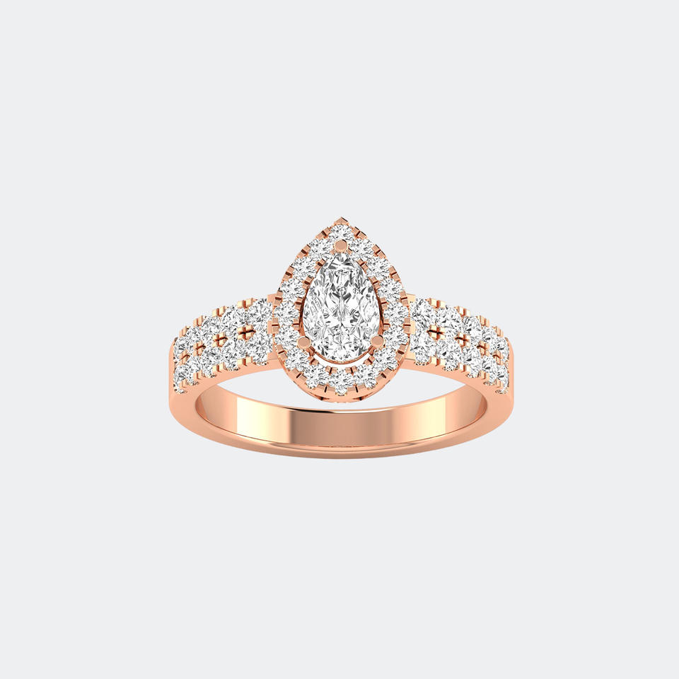 แหวนเพชรทรงลูกแพร์ 1.15 กะรัต - ดีไซน์ฮาโลแบบประดับเพชรสองชั้น