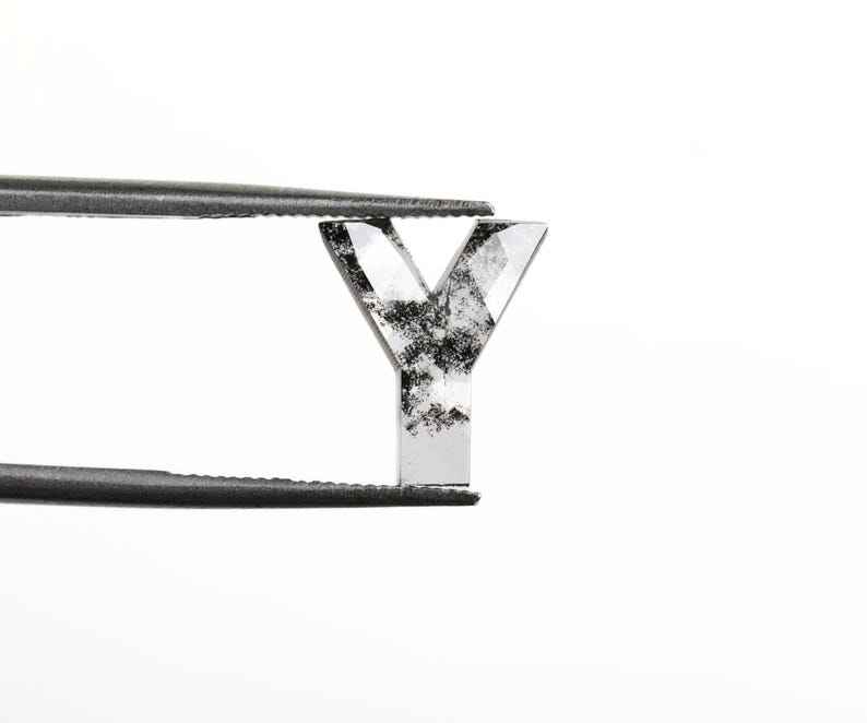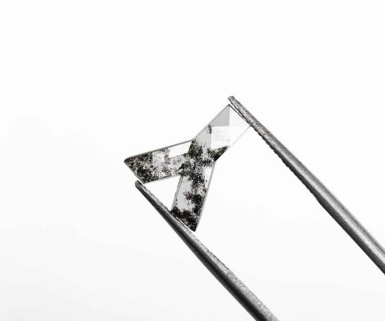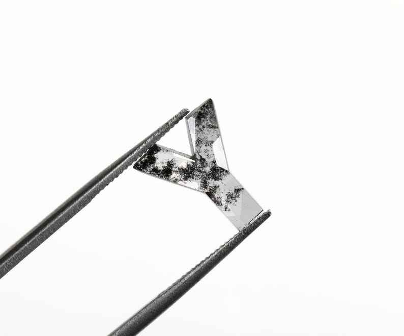 จี้เพชรรูปตัว Y สีเกลือพริกไทย ขนาด 1.16 กะรัต 9.8x8.5 มม. เพชรเลี้ยงในห้องปฏิบัติการ รับรองโดย IGI พร้อมแหวน