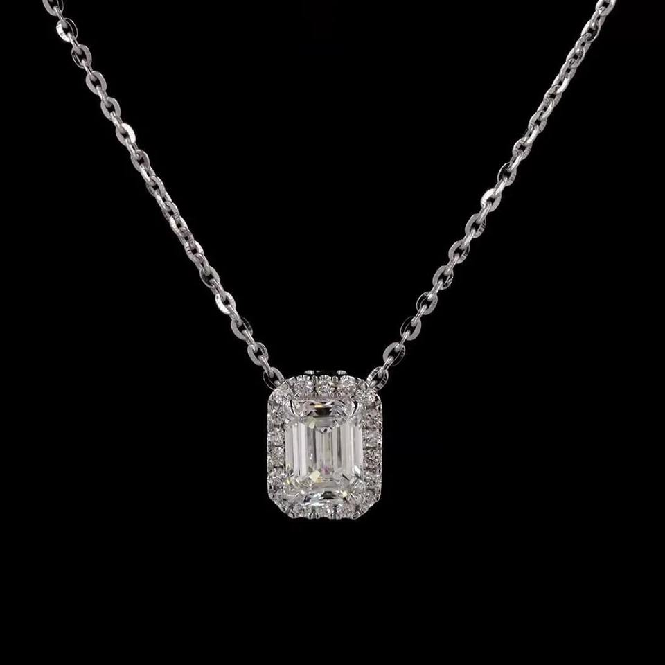 สร้อยคอเพชรสำหรับปลูกในห้องปฏิบัติการทรงมรกต1.17กะรัตทองคำขาวน้ำหนักเบาจี้สีขาวอัญมณีสวมใส่ได้ทุกวัน