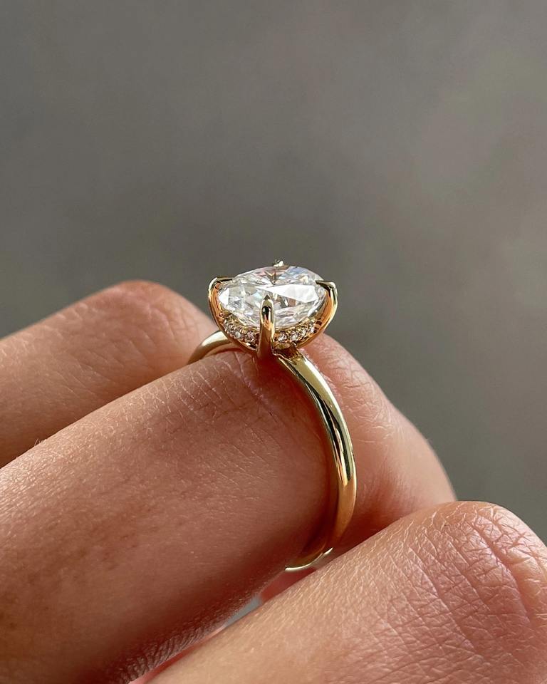 แหวนเพชรทรงรี 1.18 กะรัต เพชรเลี้ยงในห้องปฏิบัติการ รับรองโดย IGI ความสะอาดระดับ VS+ สี D-F ตัวเรือนทองคำขาว 14K แบบหนามเตย แหวนหมั้นเพชรเม็ดเดี่ยว