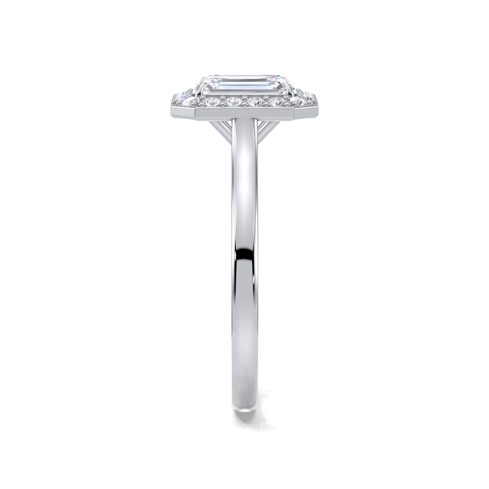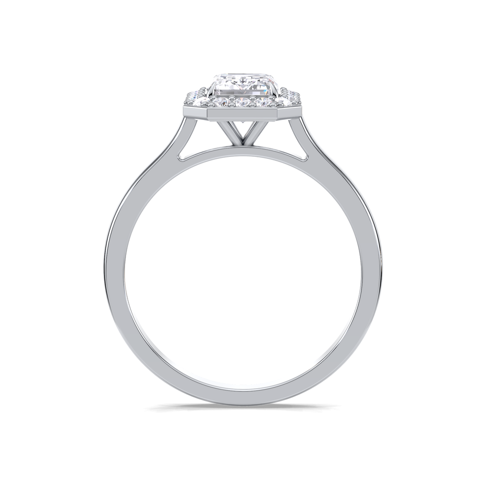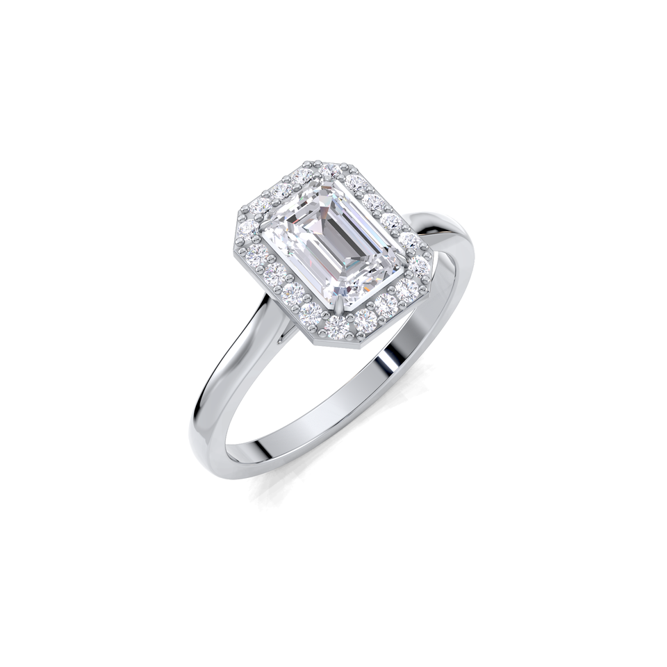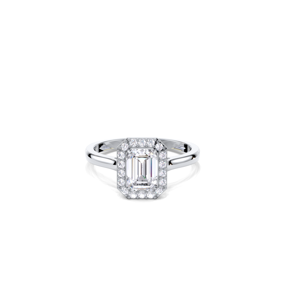 แหวนหมั้นเพชรทรงเอเมอรัลด์คัต ทรงเรขาคณิต ประดับเฮโล