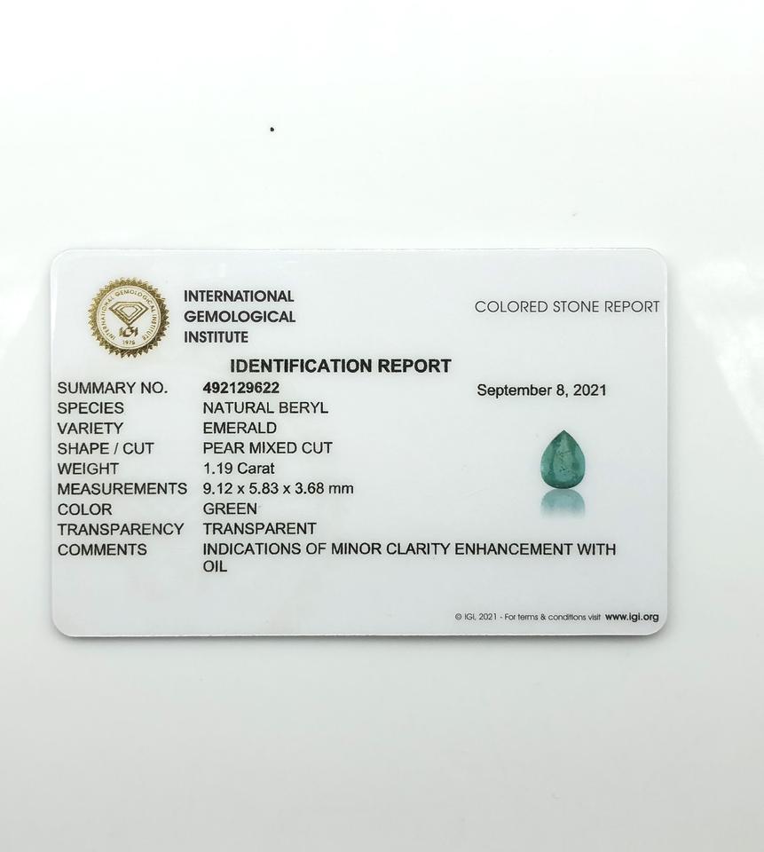 100% พลอยมรกต zambian ธรรมชาติพร้อมสำหรับการตั้งค่าเครื่องประดับขายส่งได้รับการรับรองการตัดลูกแพร์1.19 CTS