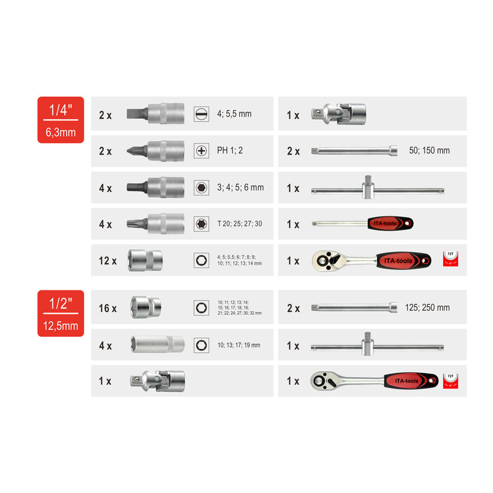 ซ็อกเก็ตบิต, แถบขยาย, ที่จับวงล้อ, Socket, Deep Socket, Universal Joint, Sliding T-Handle, Spinner Handle