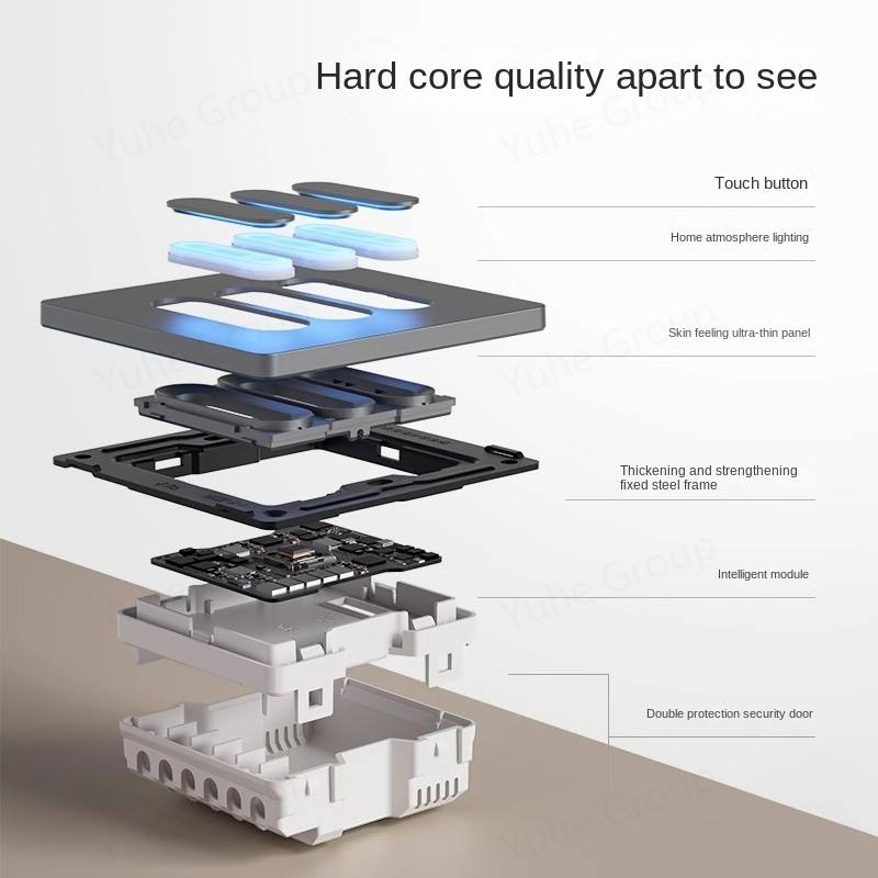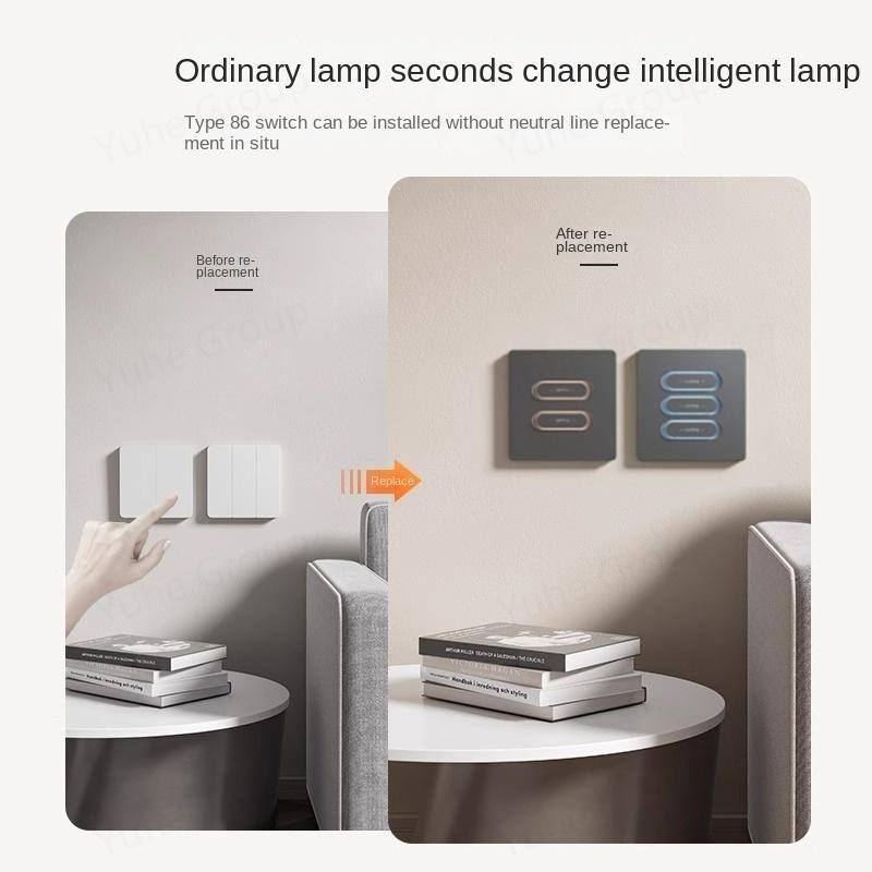 สวิตช์ไฟแบบสัมผัสอัจฉริยะแบบคู่ รองรับการควบคุมหลายจุด ใช้สายกลาง รองรับการสั่งงานด้วยเสียง Alexa 10A PC IP27 สวิตช์ติดผนัง