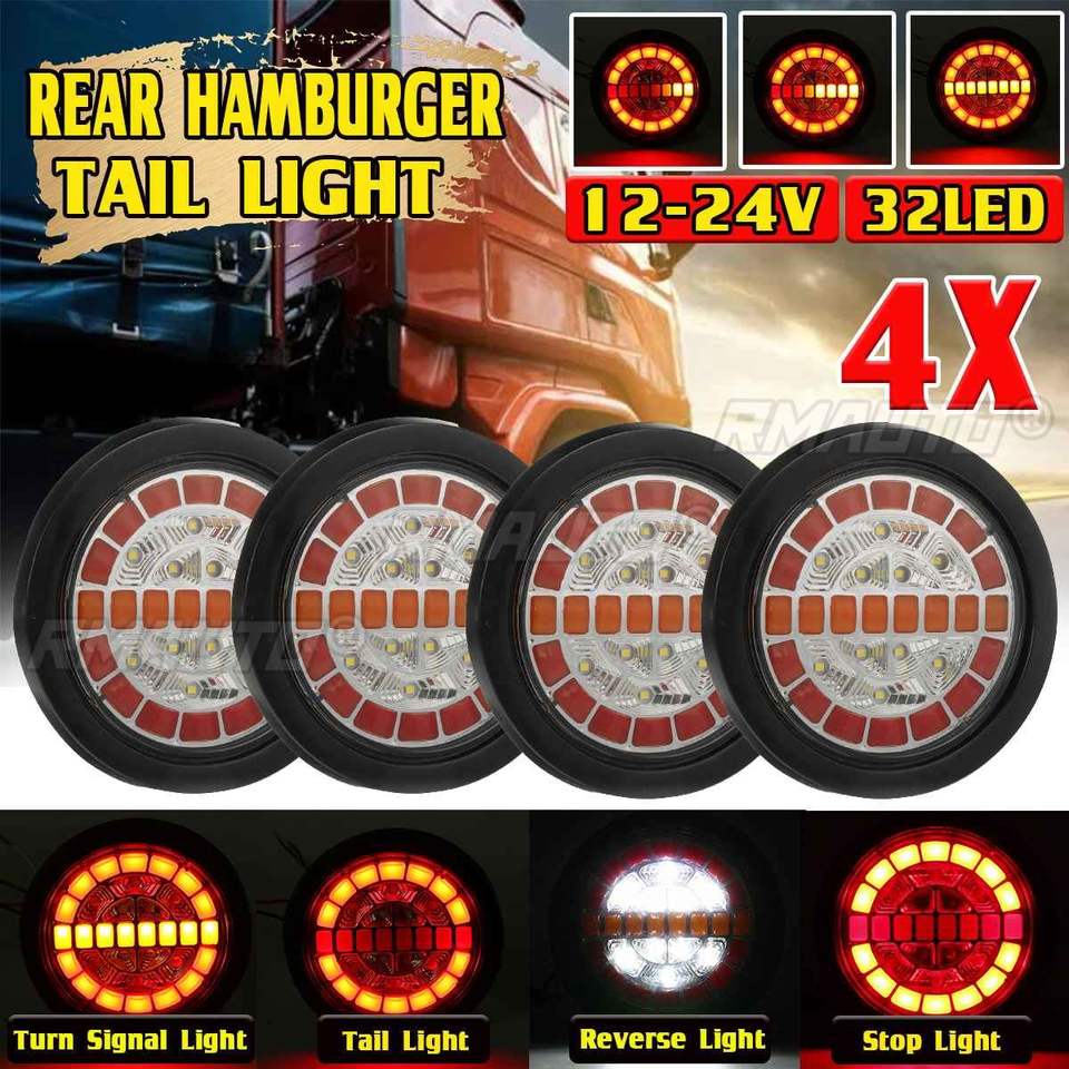 ไฟท้าย LED ทรงกลม 1/2/4 ดวง สำหรับรถพ่วง 12V 24V ไฟท้ายรถบรรทุก ไฟเลี้ยวแบบไดนามิก ไฟเบรก