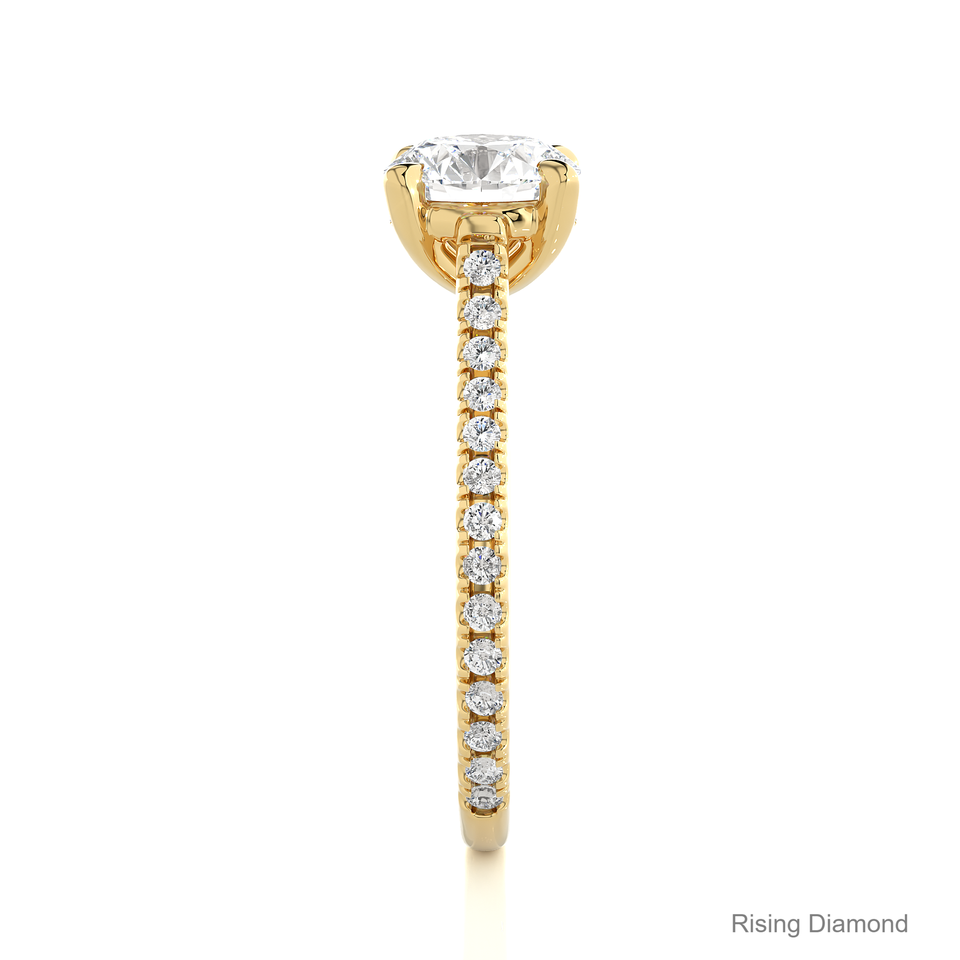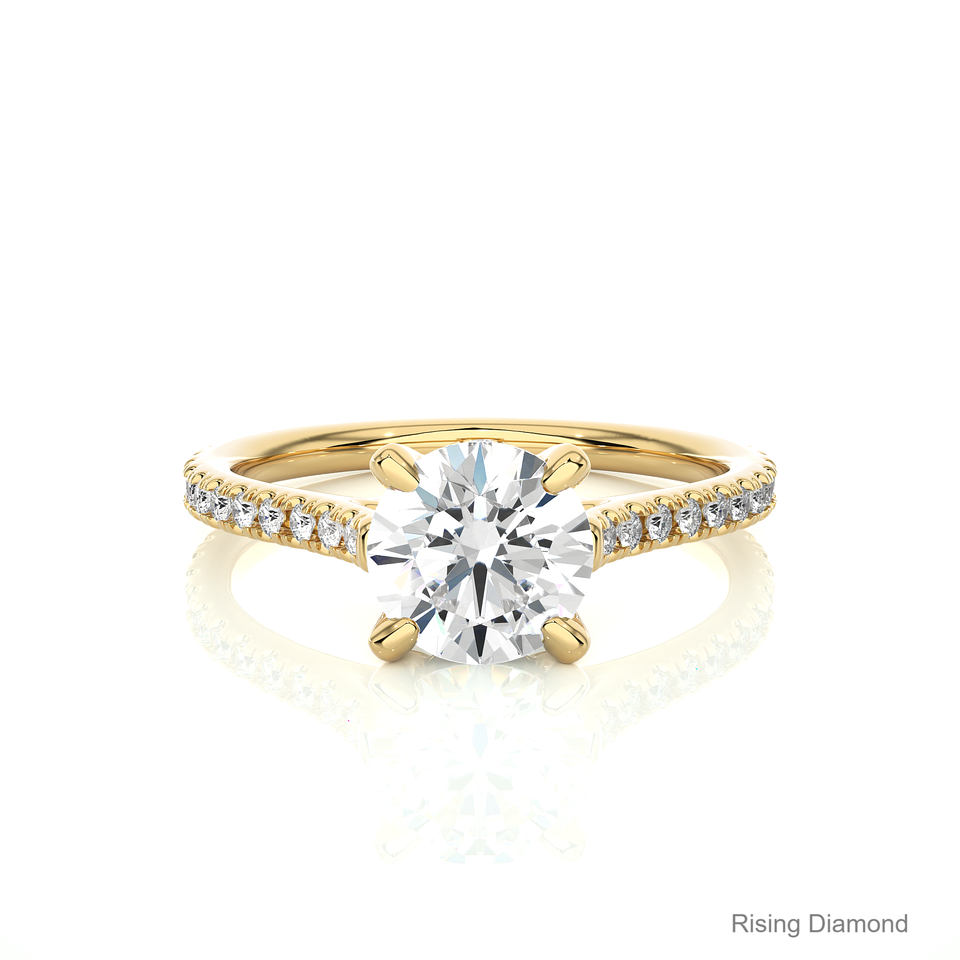 แหวนหมั้นเพชรเม็ดกลม1.2กะรัตสำหรับผู้ใหญ่แหวนเพชรสีเหลืองทองครึ่งหนึ่งของขวัญครบรอบสำหรับเธอ