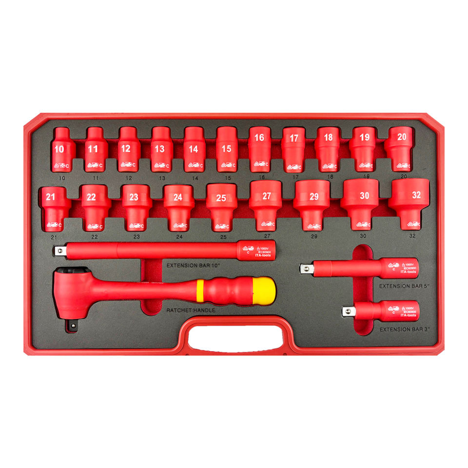 VDE-GS Insulated Socket, Insulated Extension Bar, Insulated Ratchet Handletool includes