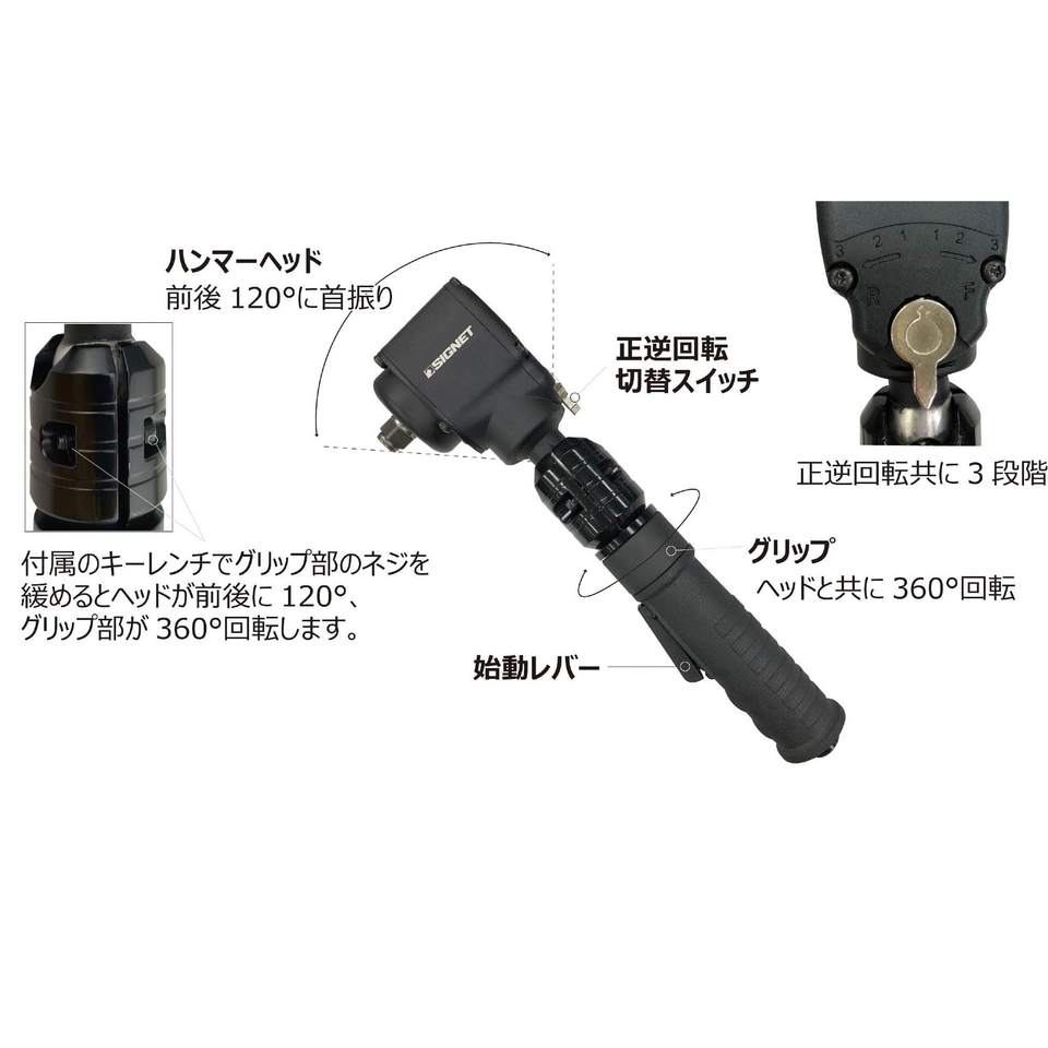 ประแจลมขนาด 1/2 นิ้ว พร้อมหัวปรับมุมได้ แรงบิดสูงสุด 610 นิวตันเมตร รองรับการปรับแต่งตามมาตรฐาน OEM