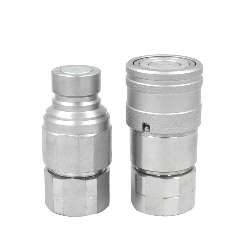 ข้อต่อไฮดรอลิกแบบหน้าเรียบขนาด 1/2 นิ้ว BSP NPT 5000 PSI ชุบสังกะสี มาตรฐาน ISO 16028 สำหรับรถตักล้อยาง เครื่องเป่าหิมะ และรถแทรกเตอร์