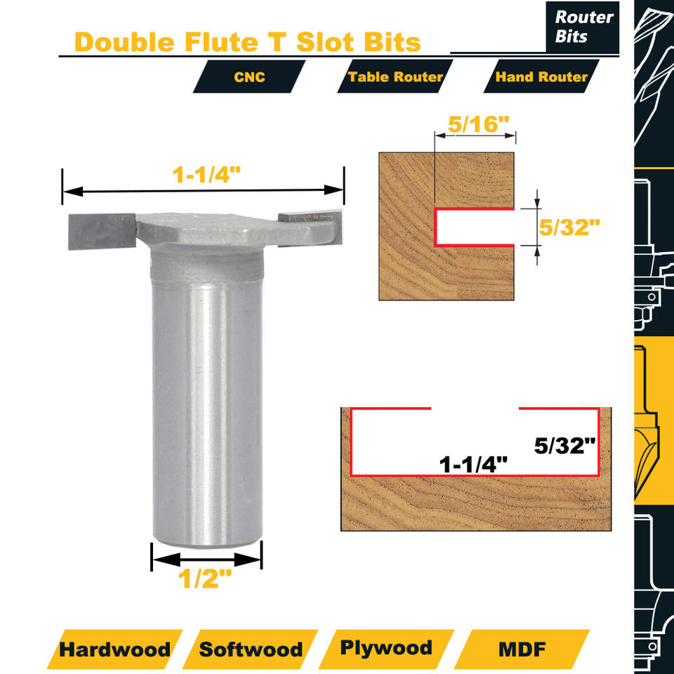 ดอกเราเตอร์เซาะร่อง T-Slot และ T-Track ขนาด 1/2 นิ้ว ความยาวตัด 5/32 นิ้ว หัวคาร์ไบด์ สำหรับงานไม้ เครื่องมือกัด