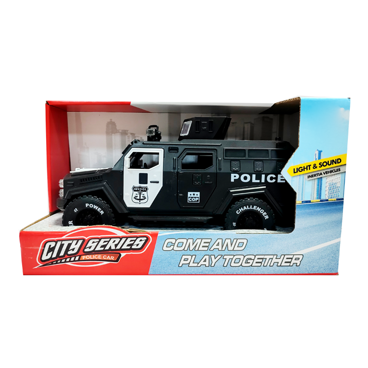 รถตำรวจหุ้มเกราะ1:20ของเล่นเสียงและไฟแอ็คชั่นแรงเฉื่อยรถต่อสู้สมจริงสำหรับเด็ก