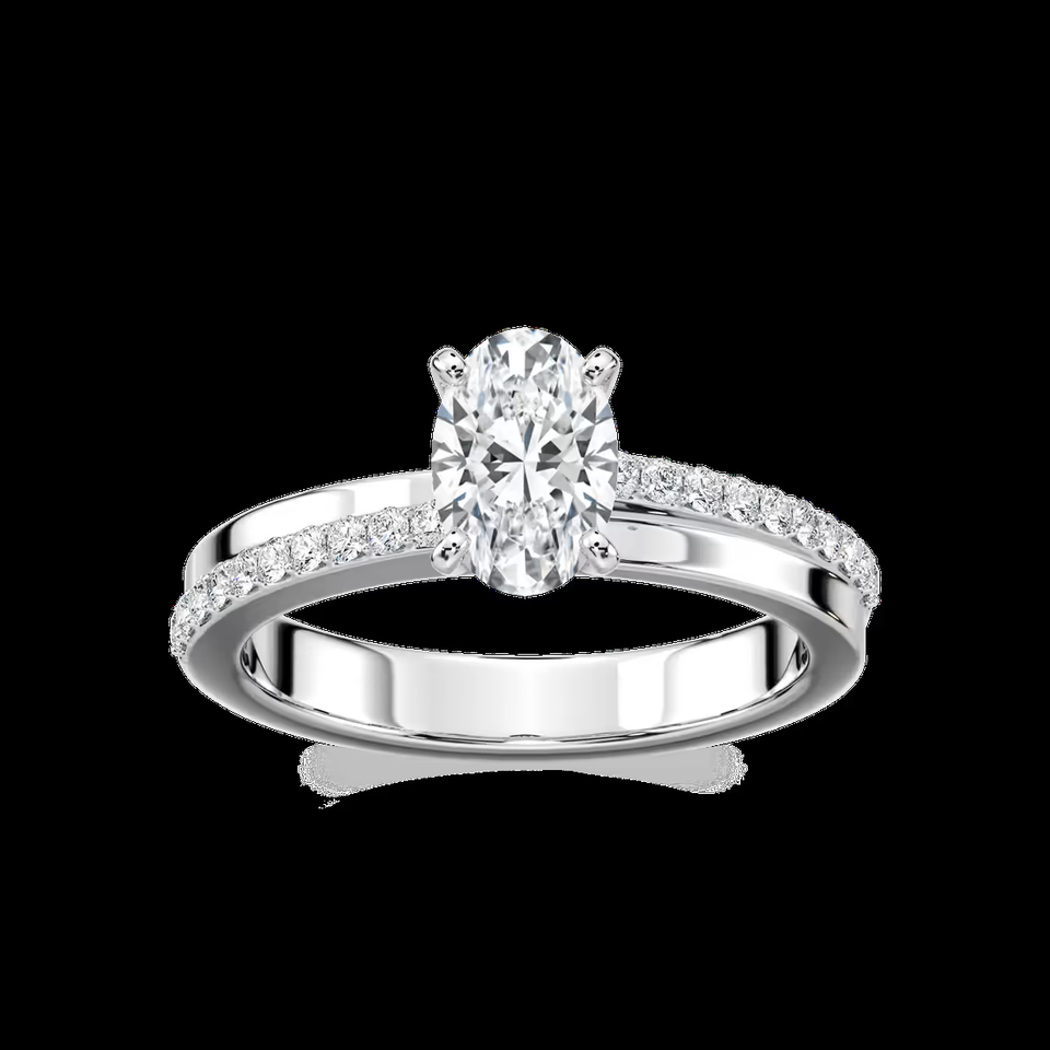 แหวนหมั้นเพชรทรงรี 1.20 กะรัต เพชรเพาะเลี้ยงในห้องปฏิบัติการ ประดับเพชรแบบ Pave Band ทรงโซลิแตร์ ได้รับการรับรองจาก IGI ทองคำแท้ 14K