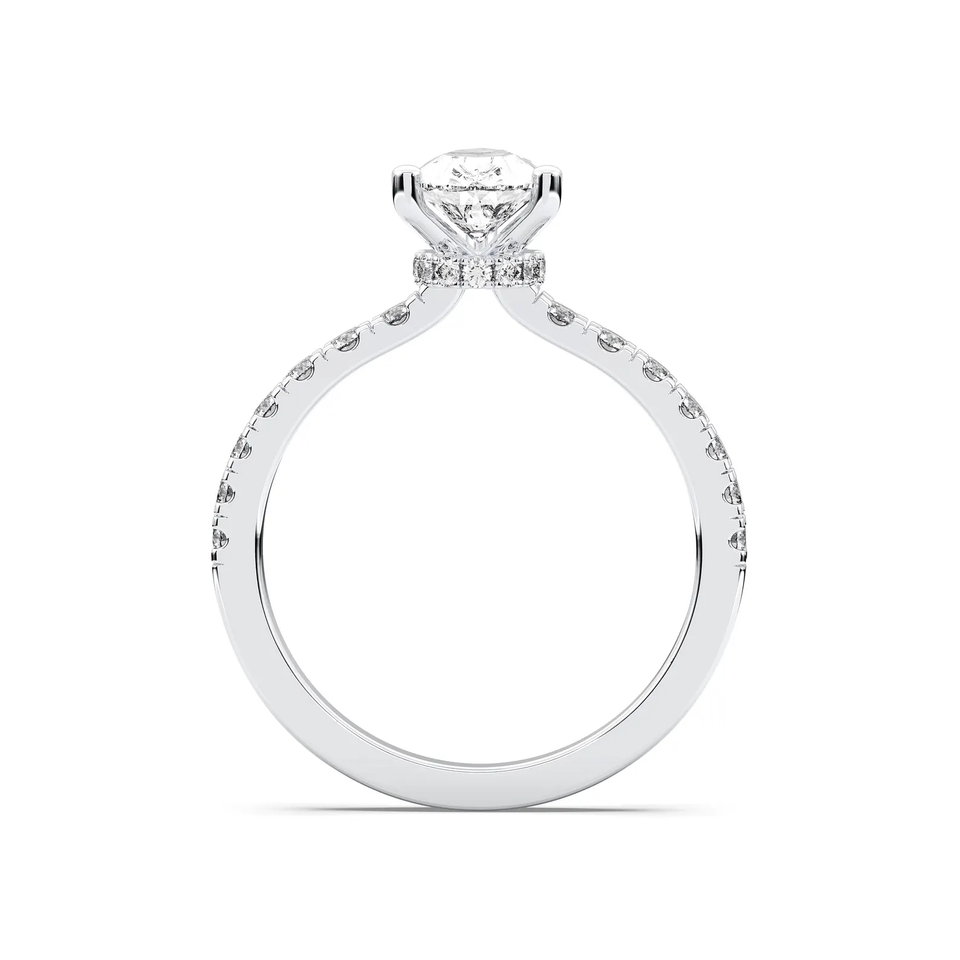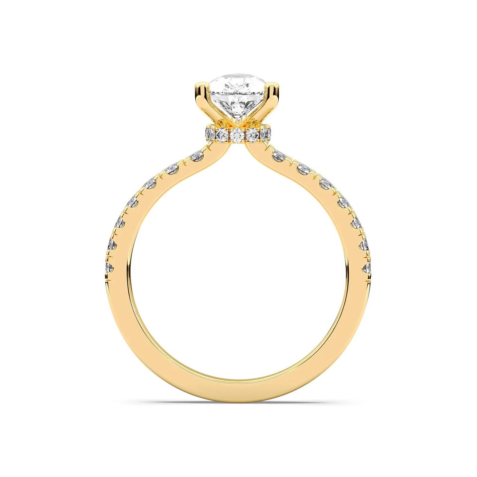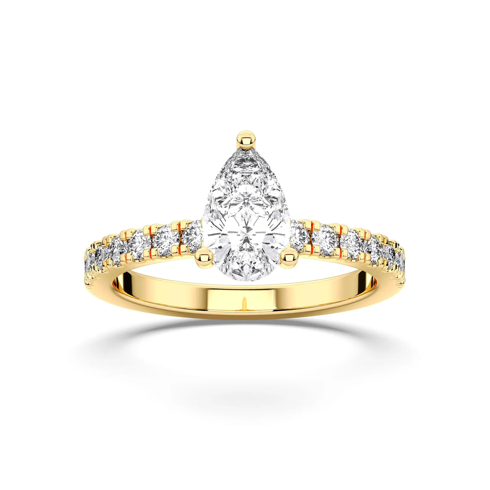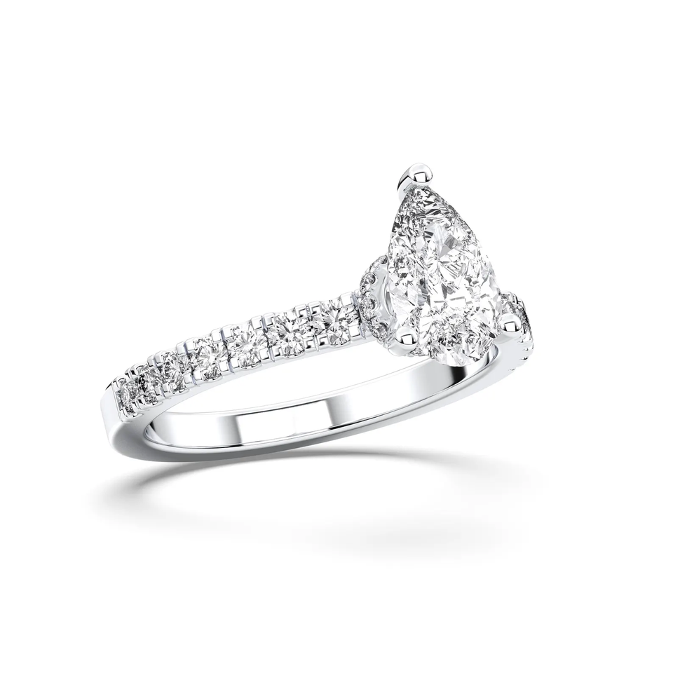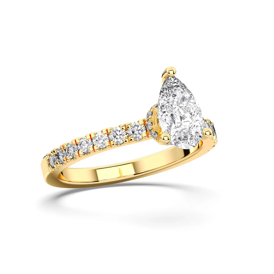 แหวนหมั้นเพชรทรงลูกแพร์ 1.20 กะรัต เพชรเลี้ยงในห้องปฏิบัติการ ได้รับการรับรองจาก IGI ตัวเรือนทองคำแท้ 14K ดีไซน์วงแหวนแบบซ่อนเพชร แหวนแต่งงานสุดหรูสำหรับผู้หญิง