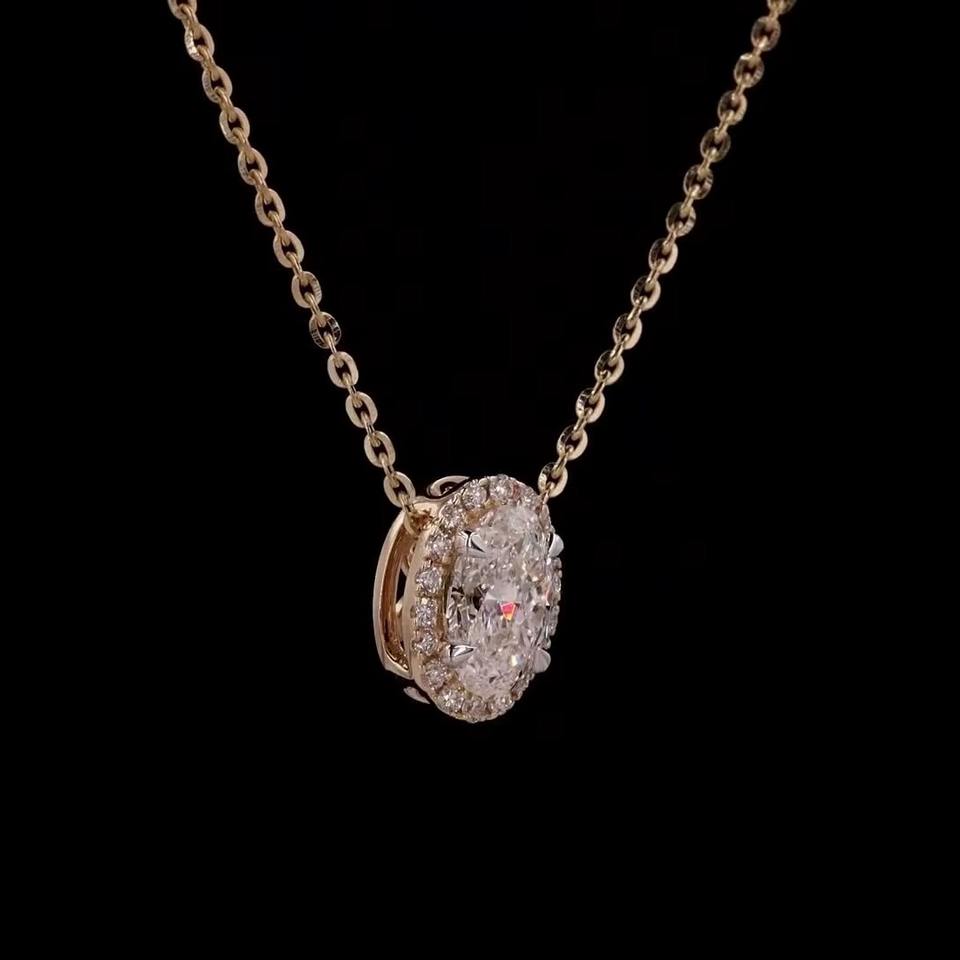 1.21 CT สร้อยคอเพชรรูปไข่ขนาด14K จี้รูปกุหลาบทองน้ำหนักเบาเครื่องประดับสุดหรูสำหรับสวมใส่ในทุกวัน