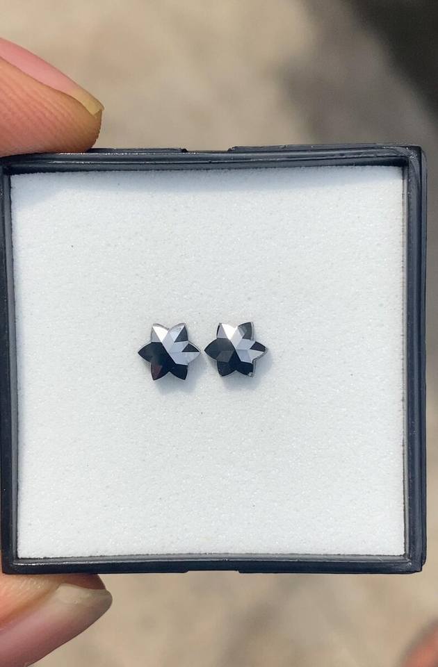 1.23 Ct (2 Pcs) Black Star Diamonds Rose Cut Color-Enhanced Natural Loose Diamonds for Custom Jewelry & Designer Ring Settings