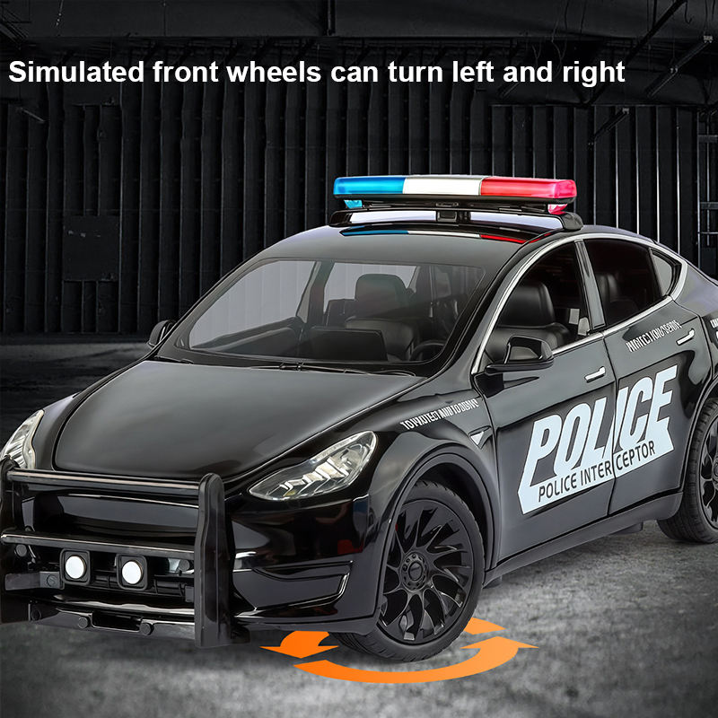 รถตำรวจของเล่นเด็กขนาด 1/24 ขับเคลื่อนด้วยแบตเตอรี่ไฟฟ้า พร้อมเสียงไซเรน ตกแต่งโต๊ะทำงาน ของขวัญโมเดลรถโลหะผสม