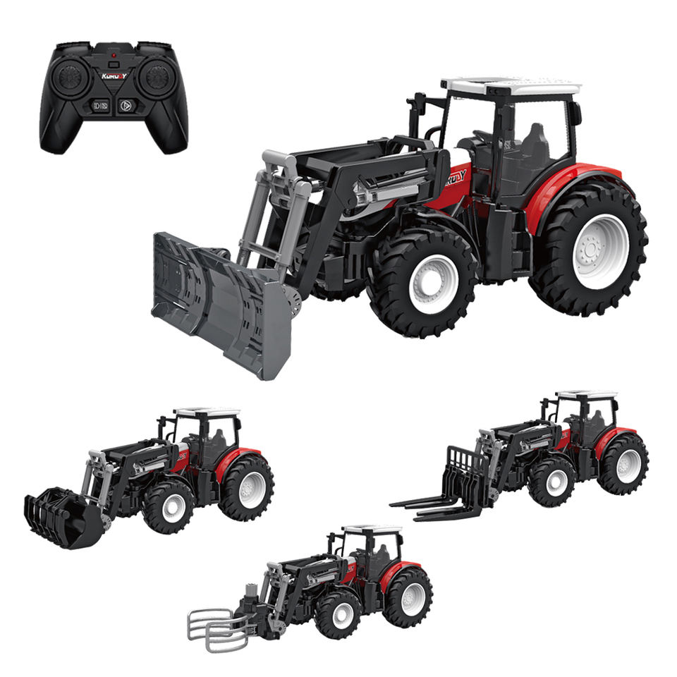รถฟาร์มสี่ล้อขนาด1/24รถแทรคเตอร์ควบคุมระยะไกล2.4ก. หลากหลายรูปแบบพร้อมไฟผู้เชี่ยวชาญระดับ6ช่องวัสดุโลหะ
