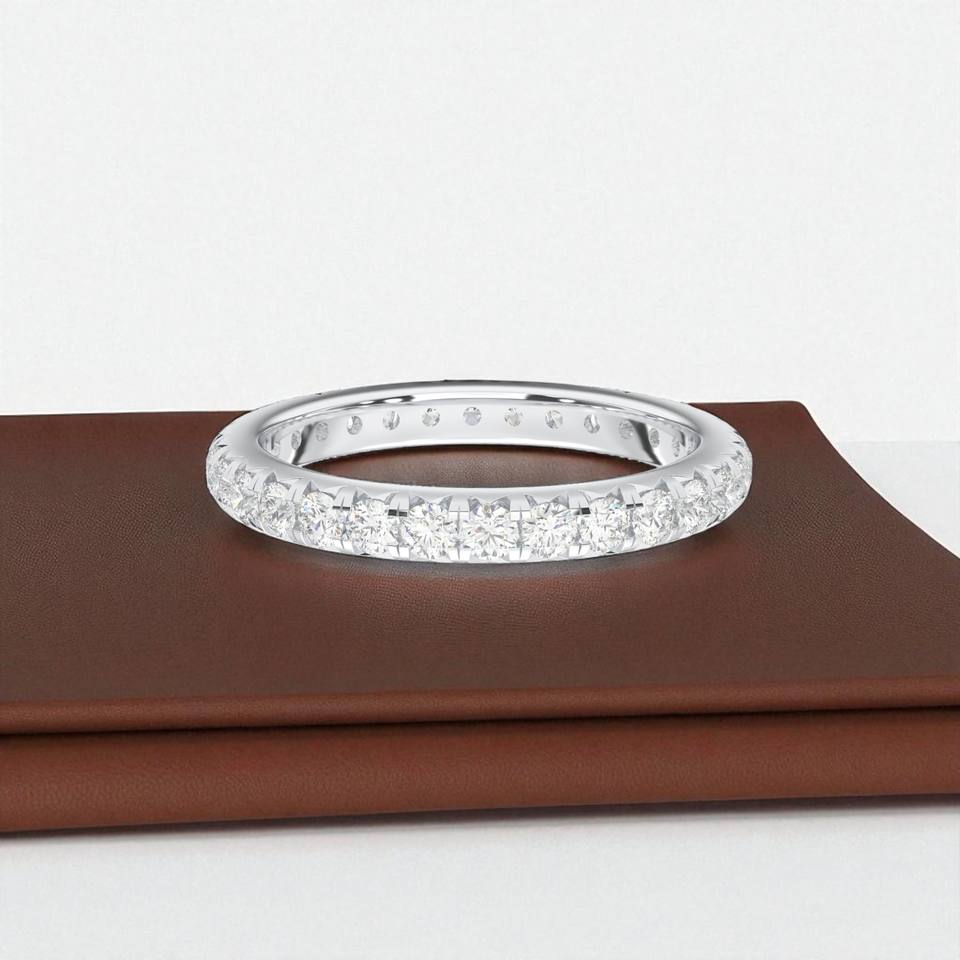 แหวนแต่งงานเพชรโมอิสซาไนต์ทรงกลม 1.25 กะรัต สี E-F/VVS VS ฝังเพชรเต็มวง ทำจากเงิน สำหรับเธอ