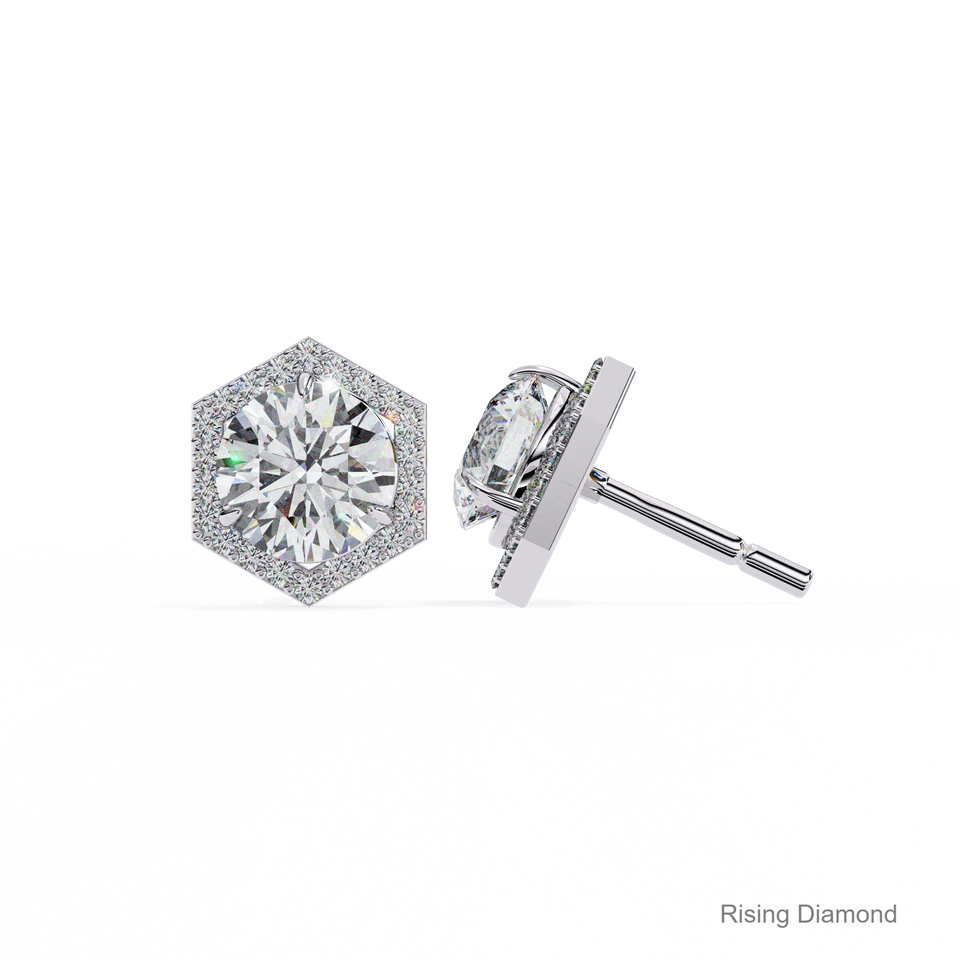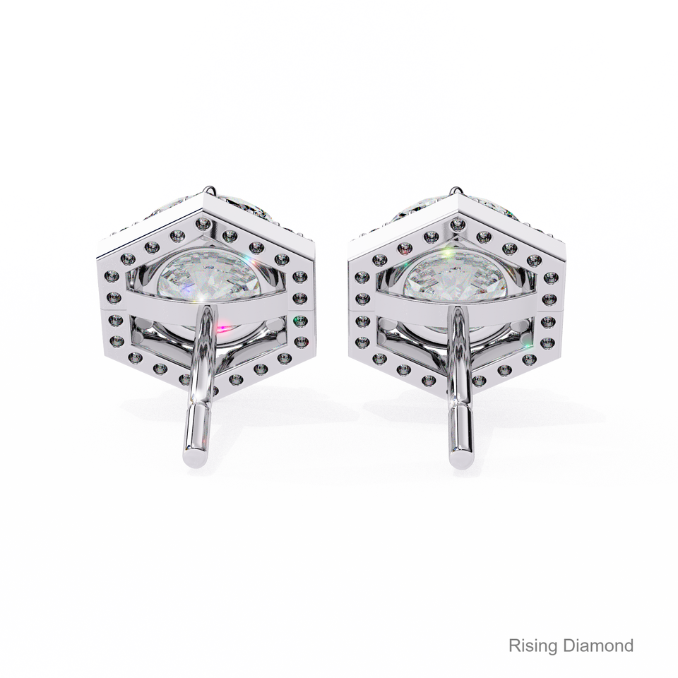 1.25 CT สำหรับแต่ละรอบตัดในห้องปฏิบัติการเพชรที่ปลูกต่างหูรัศมีเพชร CVD ได้รับการรับรองสีขาวทองของขวัญครบรอบ