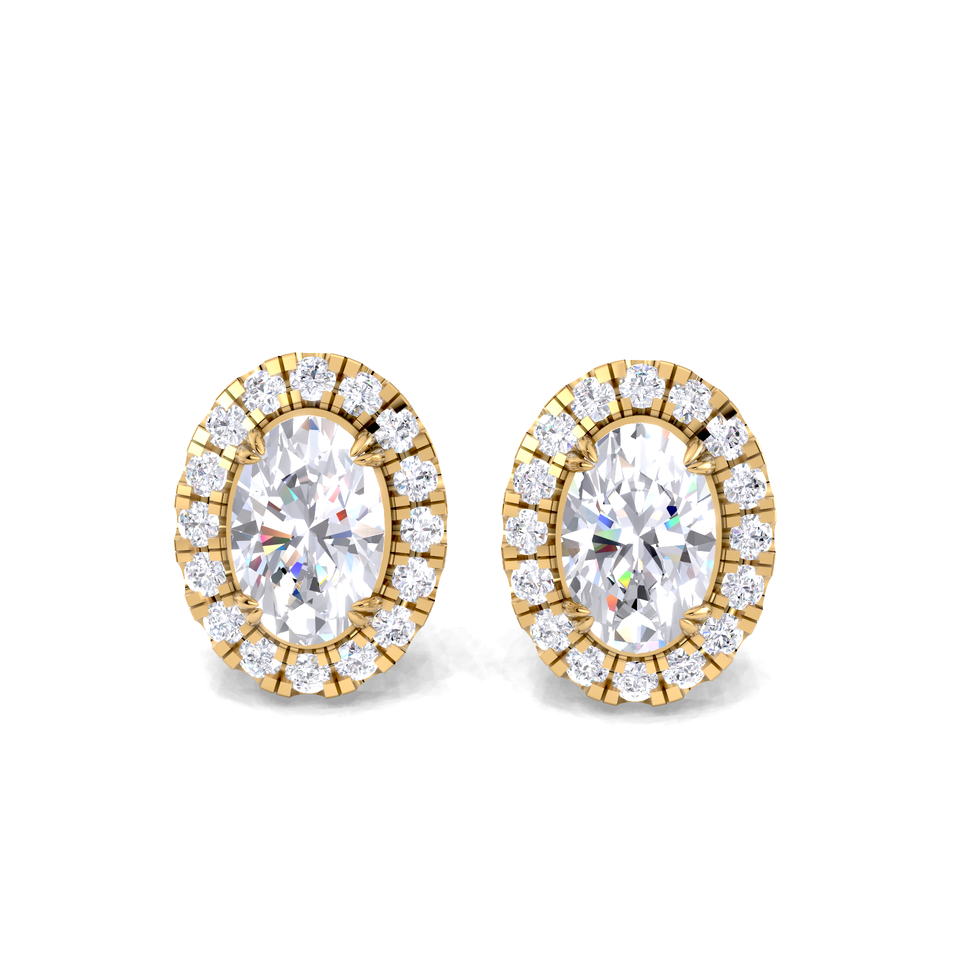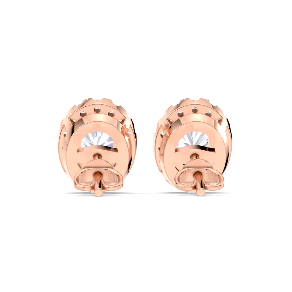 ต่างหูเพชรทรงรี 1.25 กะรัต ประดับด้วยวงแหวนเพชรสองชั้น ทองคำขาว 14K ชุบทองคำขาวและโรสโกลด์ หรูหรา ชุบโรเดียม ได้รับการรับรองจาก IGI