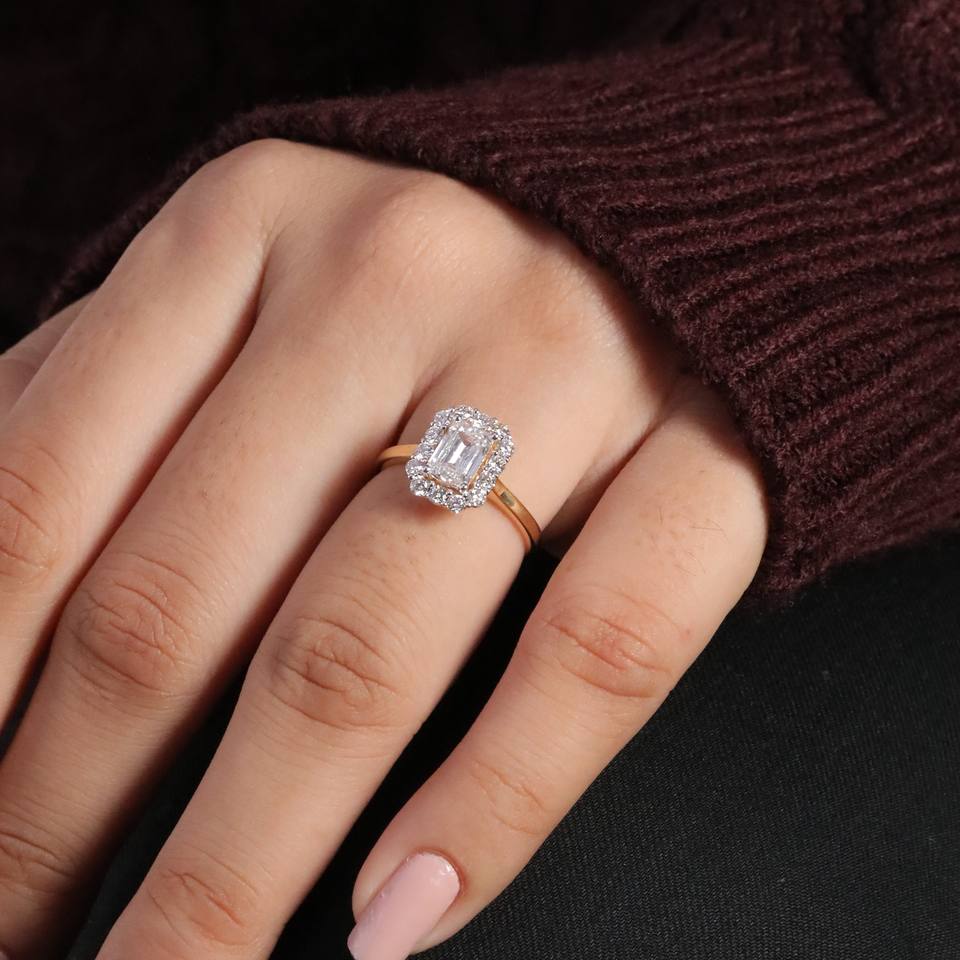 แหวนเพชรโมอิสสีเขียวมรกตขนาด1.28 CT พร้อมข้อเสนองานครบรอบของขวัญปีแหวนเพชรเรียวเล็ก