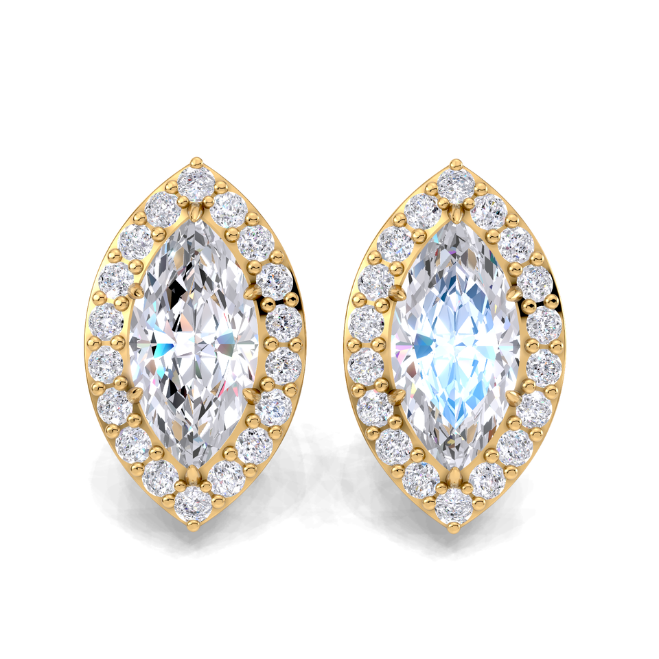 ต่างหูเพชรทรงมาร์คีส์ 1.288 กะรัต ผลิตในห้องปฏิบัติการ ประดับด้วยเพชรแบบฮาโล ตัวเรือนทอง 9K สีเหลือง/ขาว/โรสโกลด์ ชุบโรเดียม เครื่องประดับหรูหรา