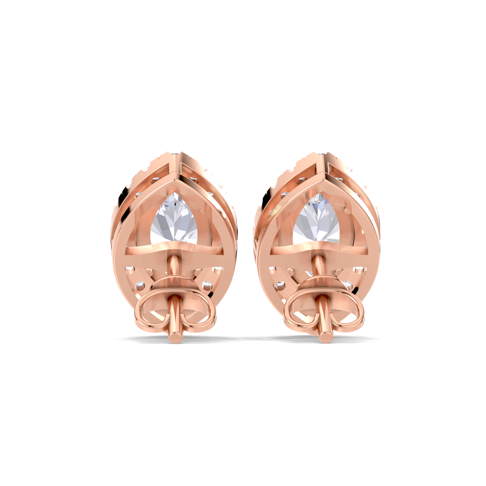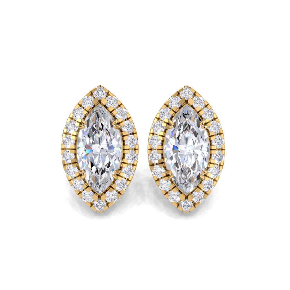 ต่างหูเพชรทรงมาร์คีส์ 1.288 กะรัต เพชรเลี้ยงในห้องปฏิบัติการ ประดับด้วยเพชรแบบฮาโล ตัวเรือนทองคำ 9K สีเหลือง ขาว และโรสโกลด์ ชุบโรเดียม หรูหรา สวยงาม