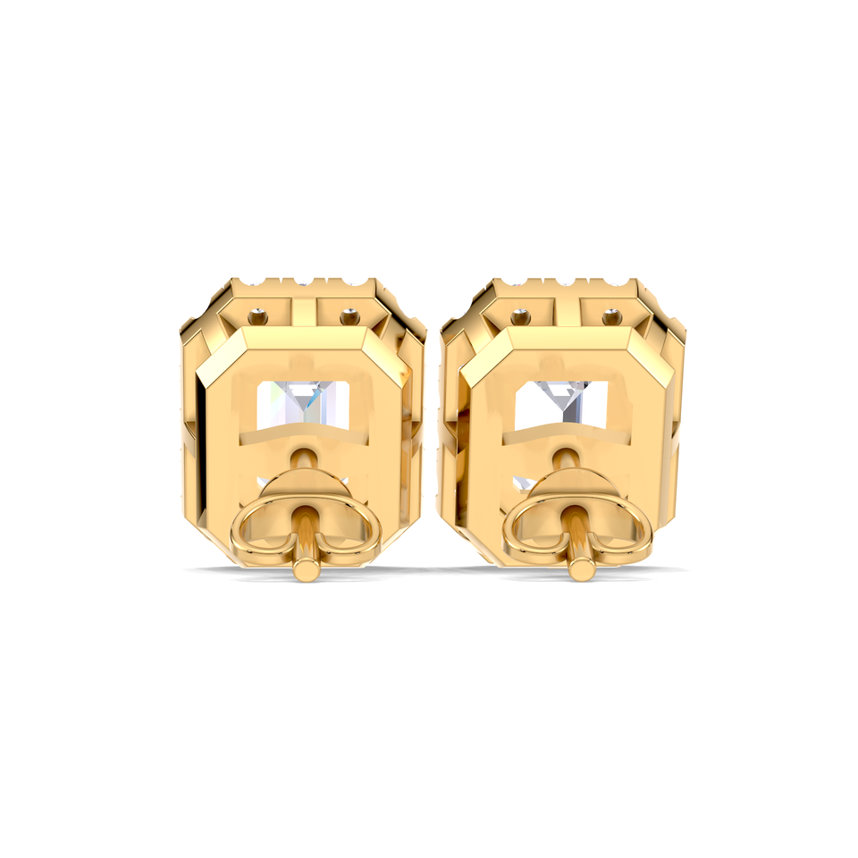 1.28CT Lab Grown Emerald Cut Diamond Double Halo Stud Earrings 18K Yellow/White/Rose Gold Rhodium Plated Prong Micro Pav