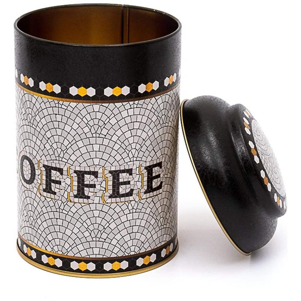 Ø105ดีบุกลายโมเสกเรขาคณิต1.2L โลหะกลม X 150มม. พร้อมฝาโดมสำหรับเก็บฝักกาแฟขนาด105มม. X 150มม. x 1.2L