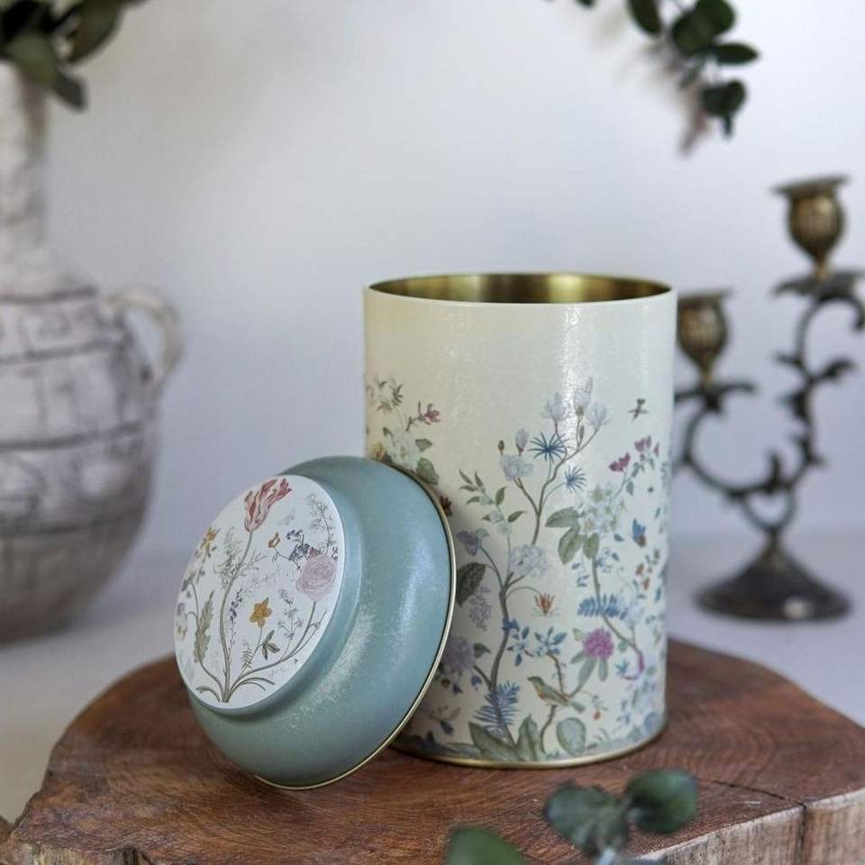 1.2L Pastel Yellow round Metal Tin with Floral Design Dome Lid 105mm x 150mm for Jewelry Organizers