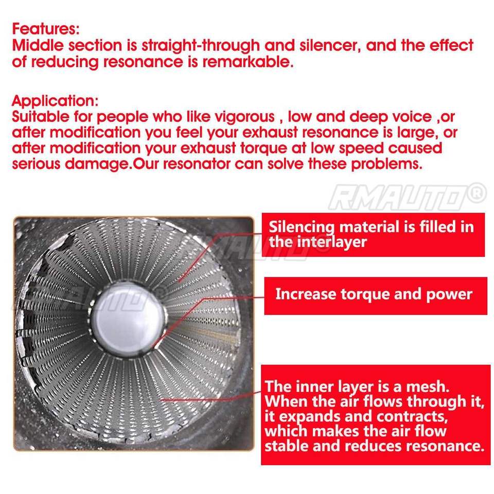 ท่อไอเสียรถยนต์แบบสากลขนาด 63 มม. 1/2 ชิ้น ปลายท่อไอเสียขนาด 2.5 นิ้ว พร้อมตัวเก็บเสียงและเรโซเนเตอร์ ทำจากสแตนเลส