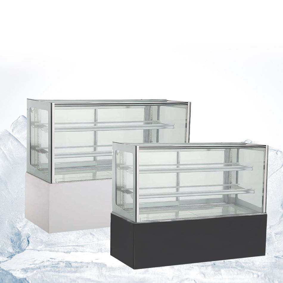 ตู้โชว์เค้กขนาด1.2ม. ตู้โชว์เบเกอรี่เชิงพาณิชย์ตู้โชว์ขนมหวานพร้อมไฟ LED และกระจกสี่เหลี่ยม