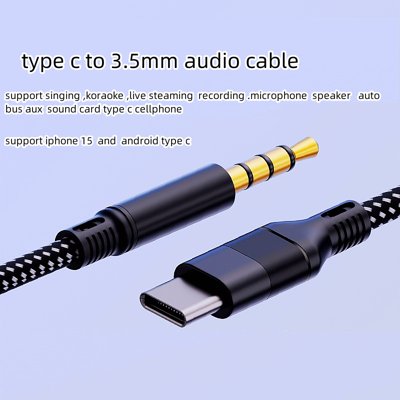 1.2m DAC Type C สายสัญญาณเสียง USB Type-C ตัวผู้ไปยังแจ็ค3.5มม. อะแดปเตอร์เสียงตัวผู้สำหรับรถยนต์สำหรับ iPhone 15