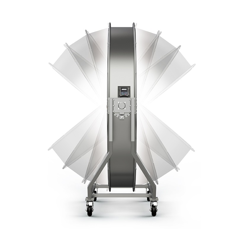 พัดลมอุตสาหกรรมแบบแกนหมุน 1.2 เมตร รุ่น TOPMF-120 ยี่ห้อ Topfan ทำจากอลูมิเนียมอัลลอยด์ ใช้ไฟ 220 โวลต์ เสียงเบา 39 เดซิเบล แบบเคลื่อนย้ายได้ เหมาะสำหรับศูนย์กีฬา