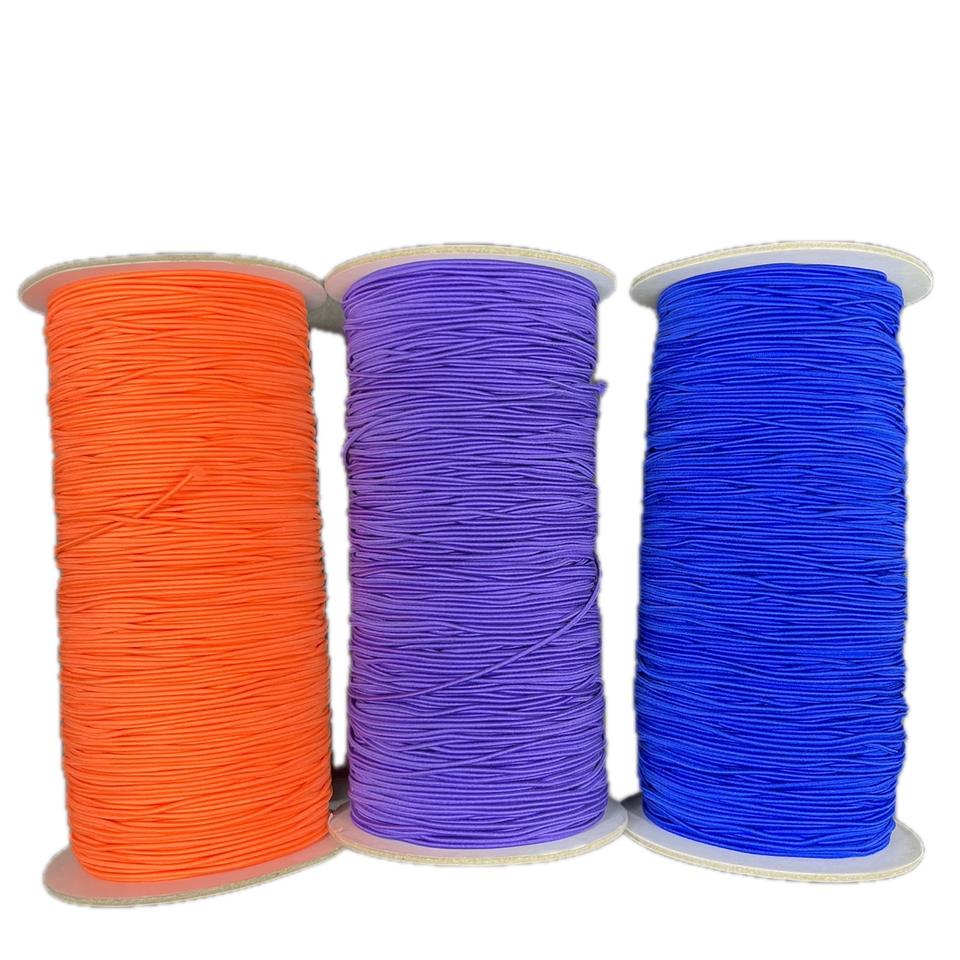 เชือกยางยืดกลมถักทอขนาด 1.2 มม. ทำจากโพลีเอสเตอร์ 100% ปรับแต่งความกว้างและสีได้ ผลิตในไต้หวัน
