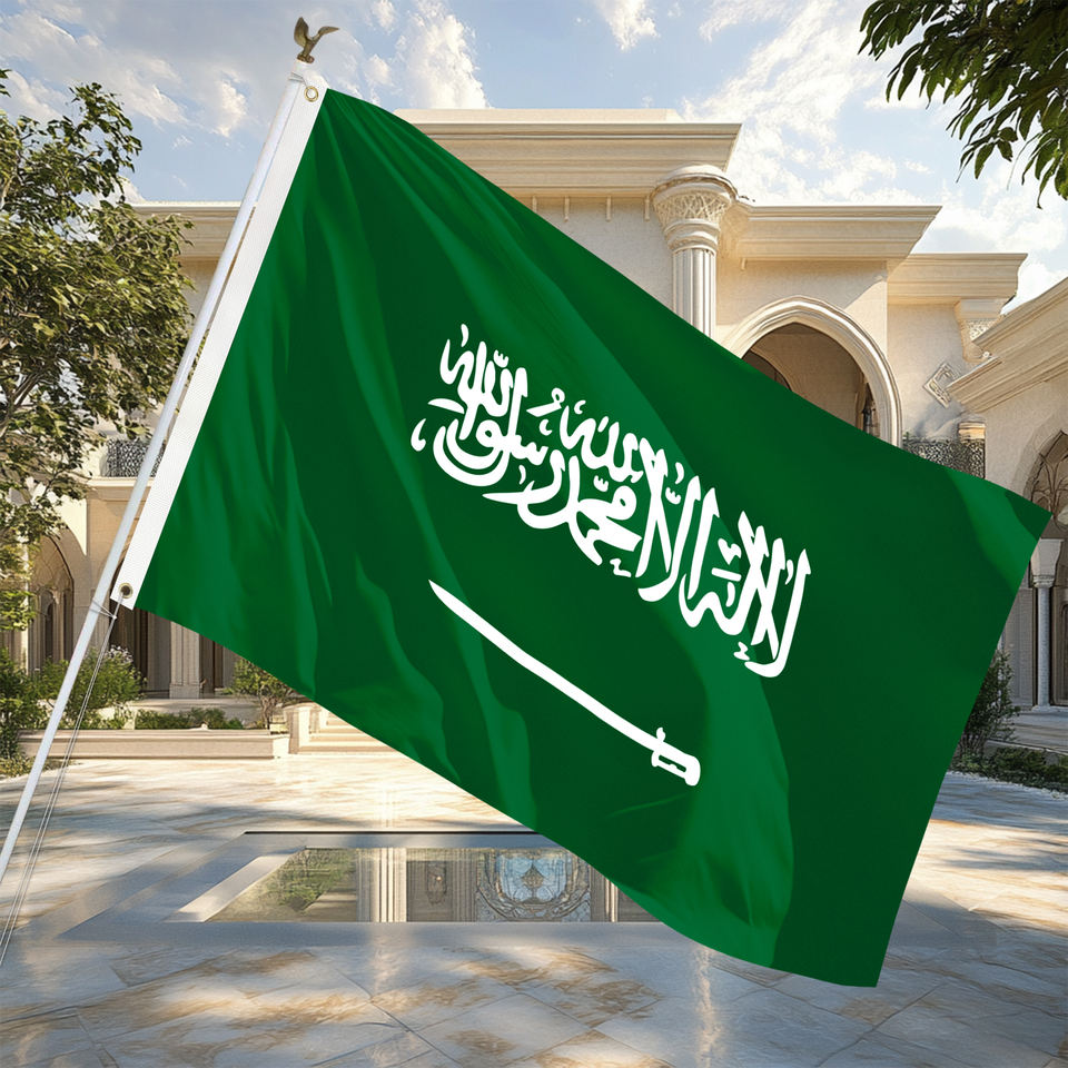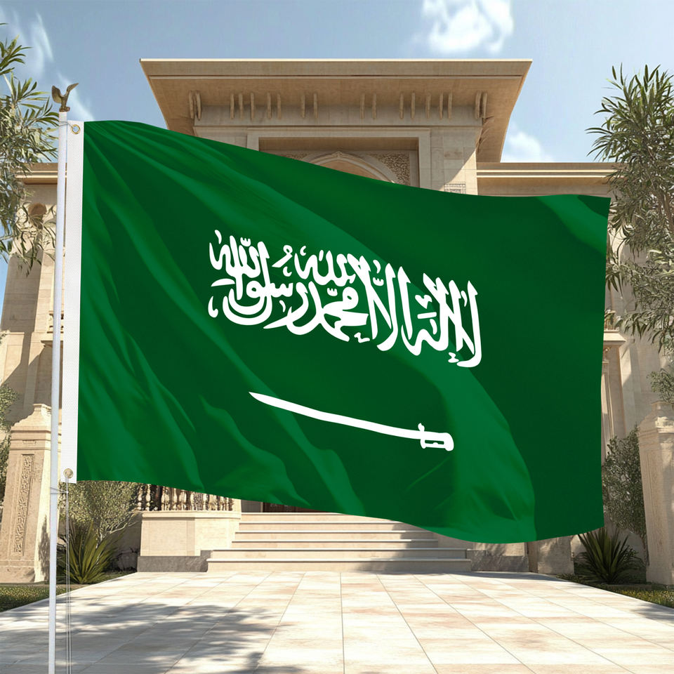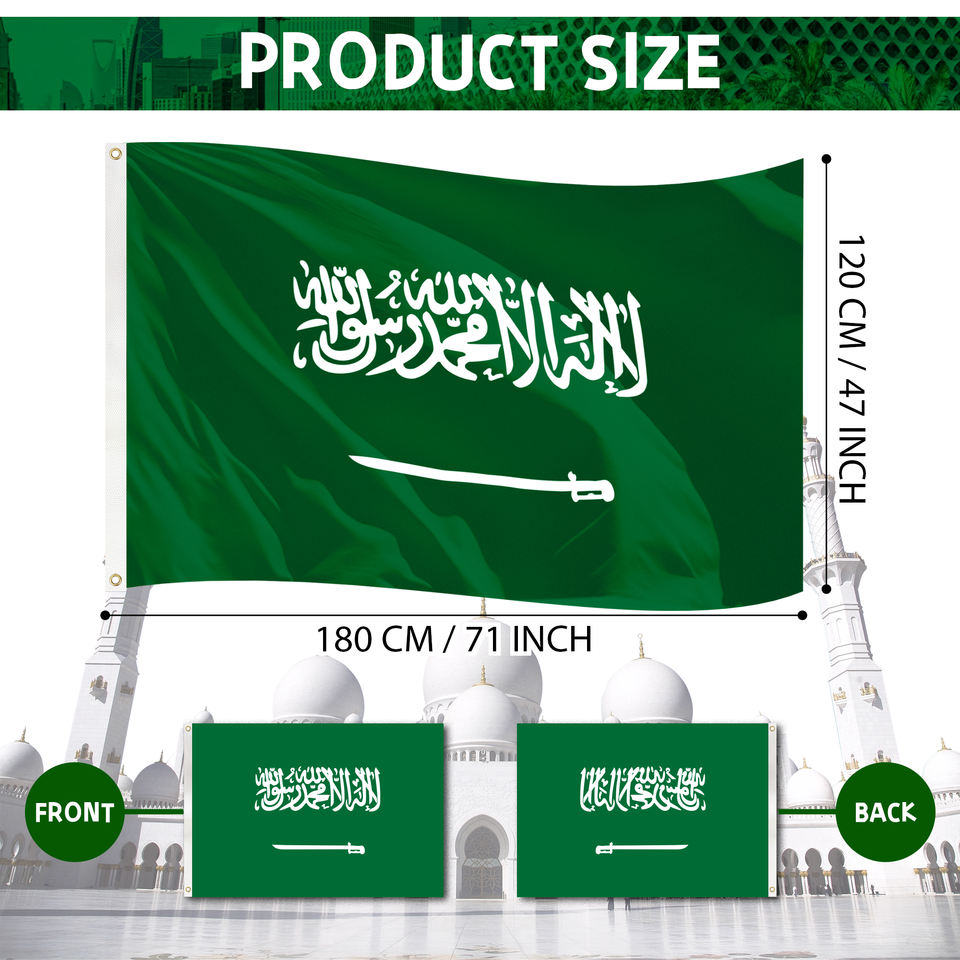 ธงซาอุดีอาระเบียขนาด 1.2x1.8 เมตร สีสดใส ผลิตจากผ้าโพลีเอสเตอร์คุณภาพดี พิมพ์ลายดิจิทัล